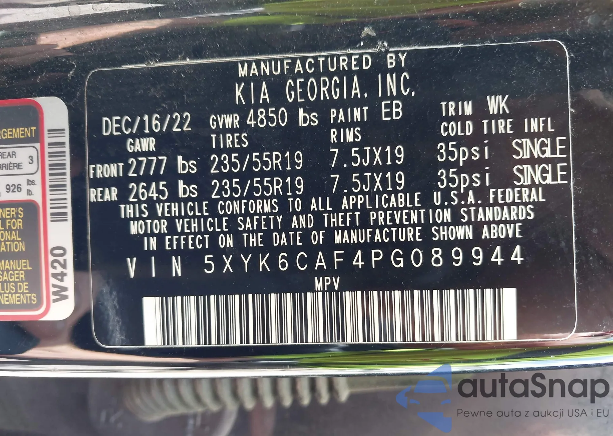 • VIN 5XYK6CAF4PG089944