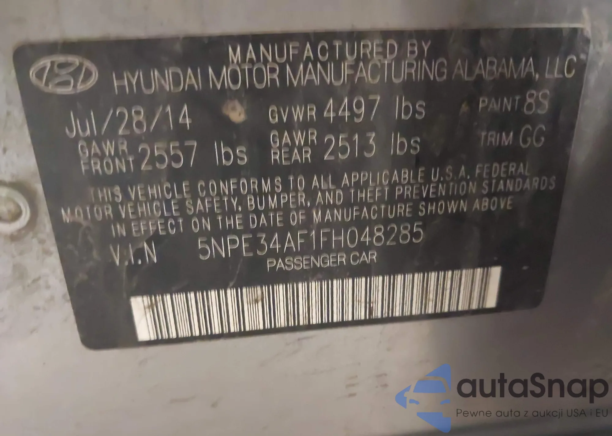 • VIN 5NPE34AF1FH048285