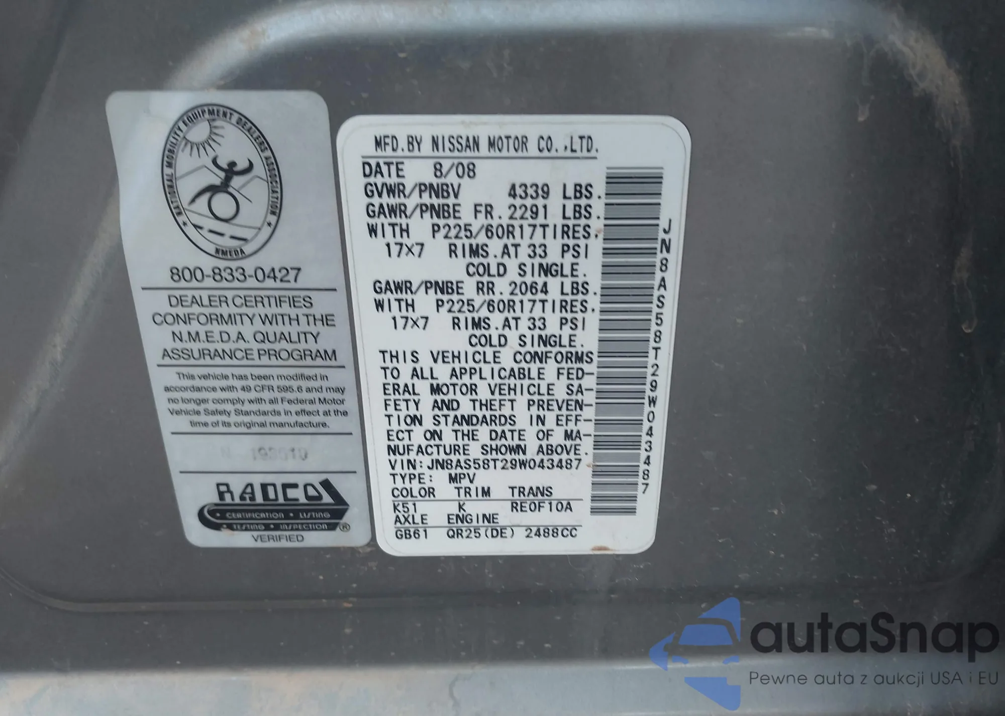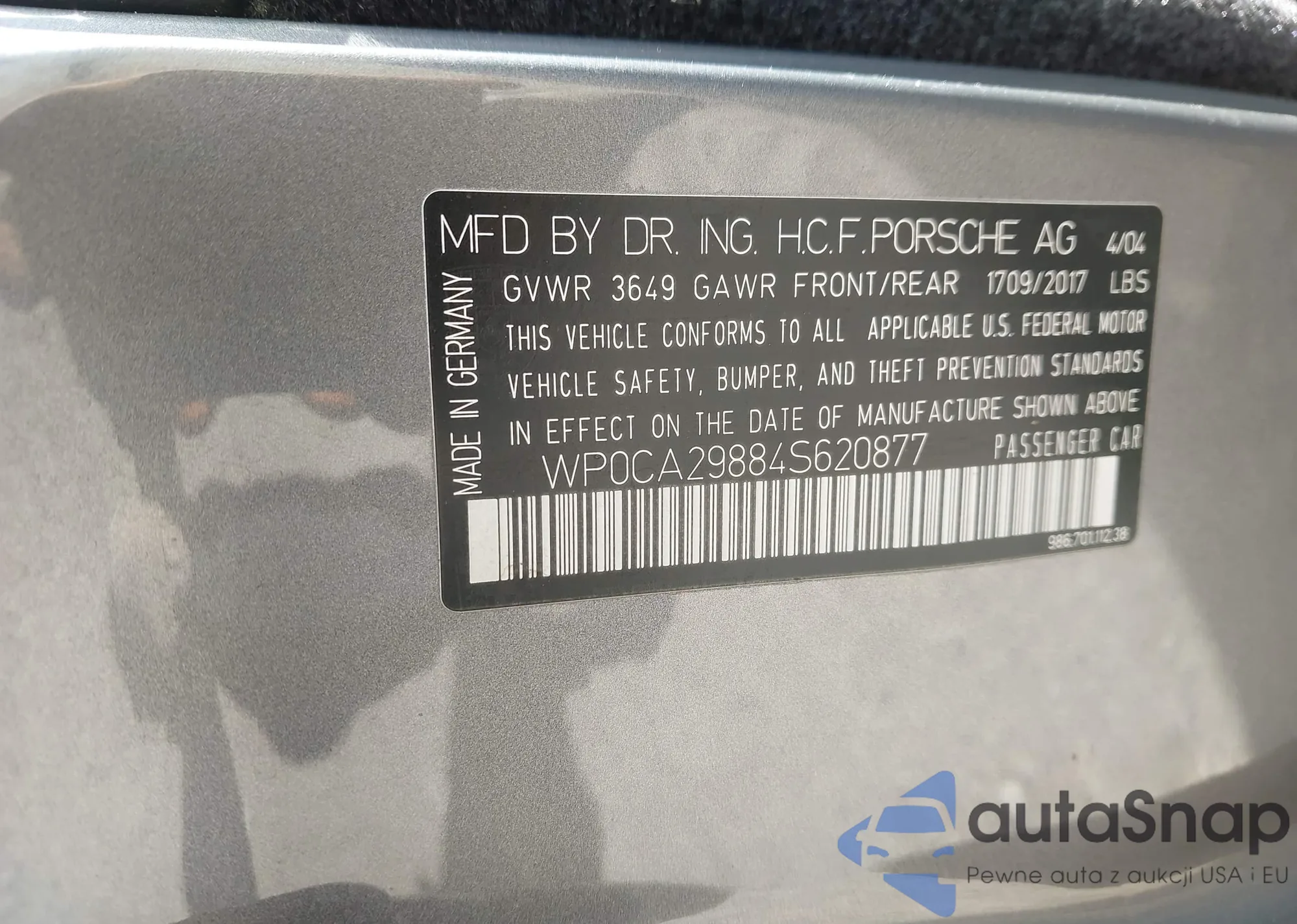 LOT: 43335669 VIN: WP0CA29884S620877