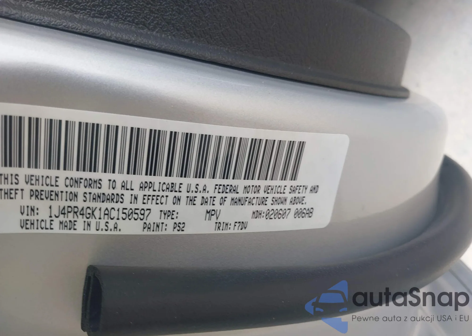 • VIN 1J4PR4GK1AC150597
