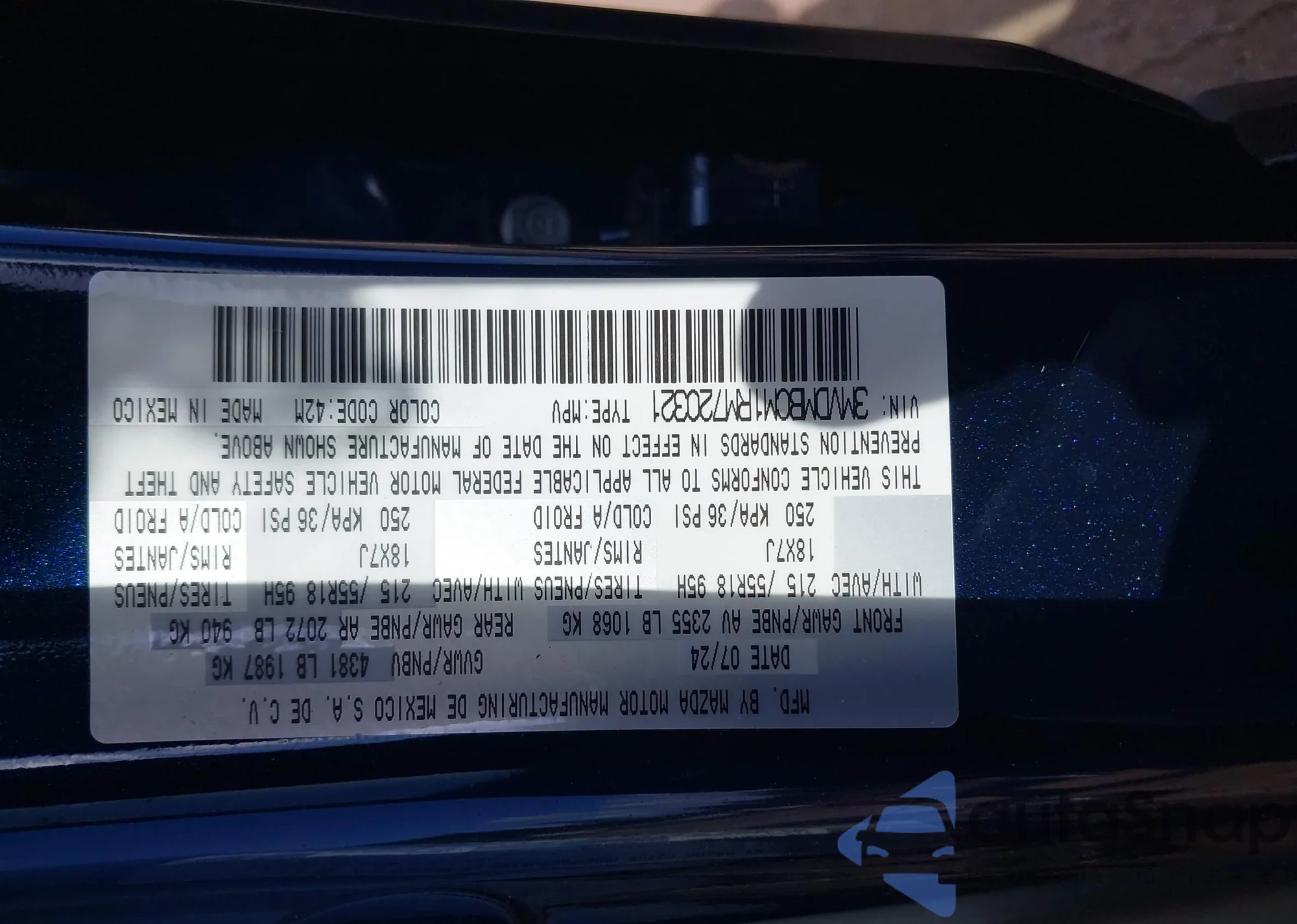 • VIN 3MVDMBCM1RM720321
