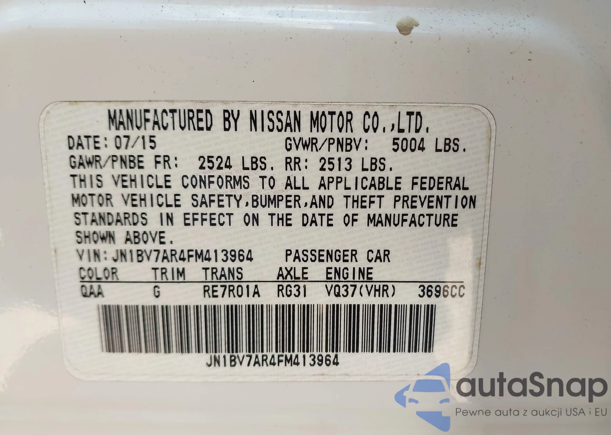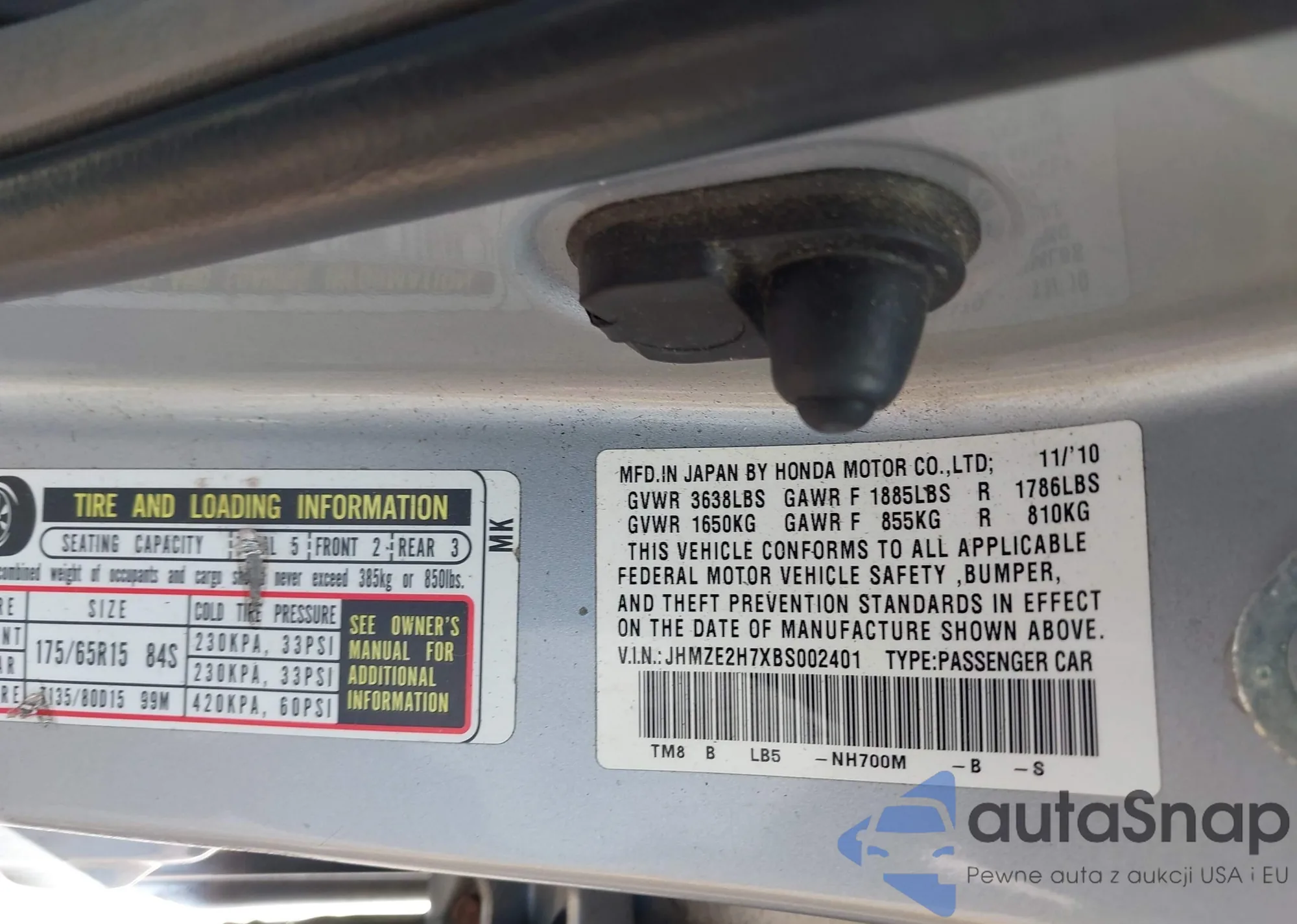 LOT: 43315803 VIN: JHMZE2H7XBS002401