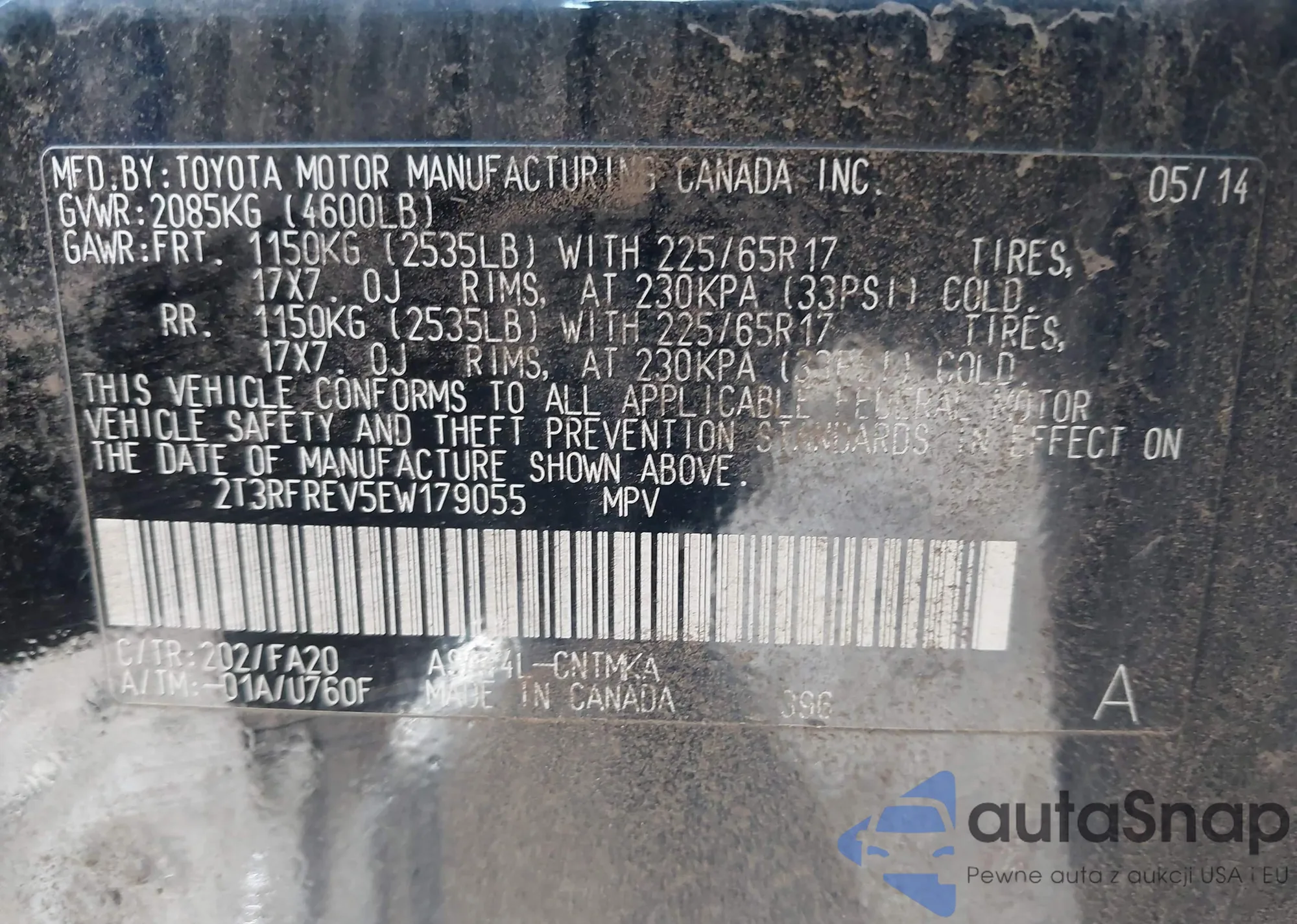 • VIN 2T3RFREV5EW179055