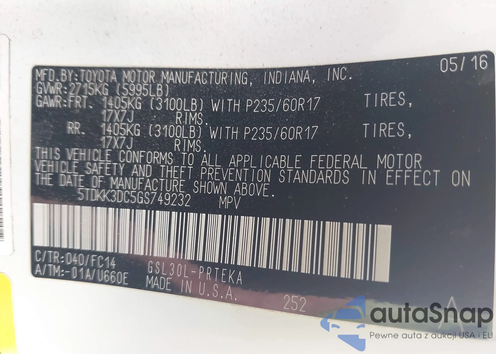 • VIN 5TDKK3DC5GS749232