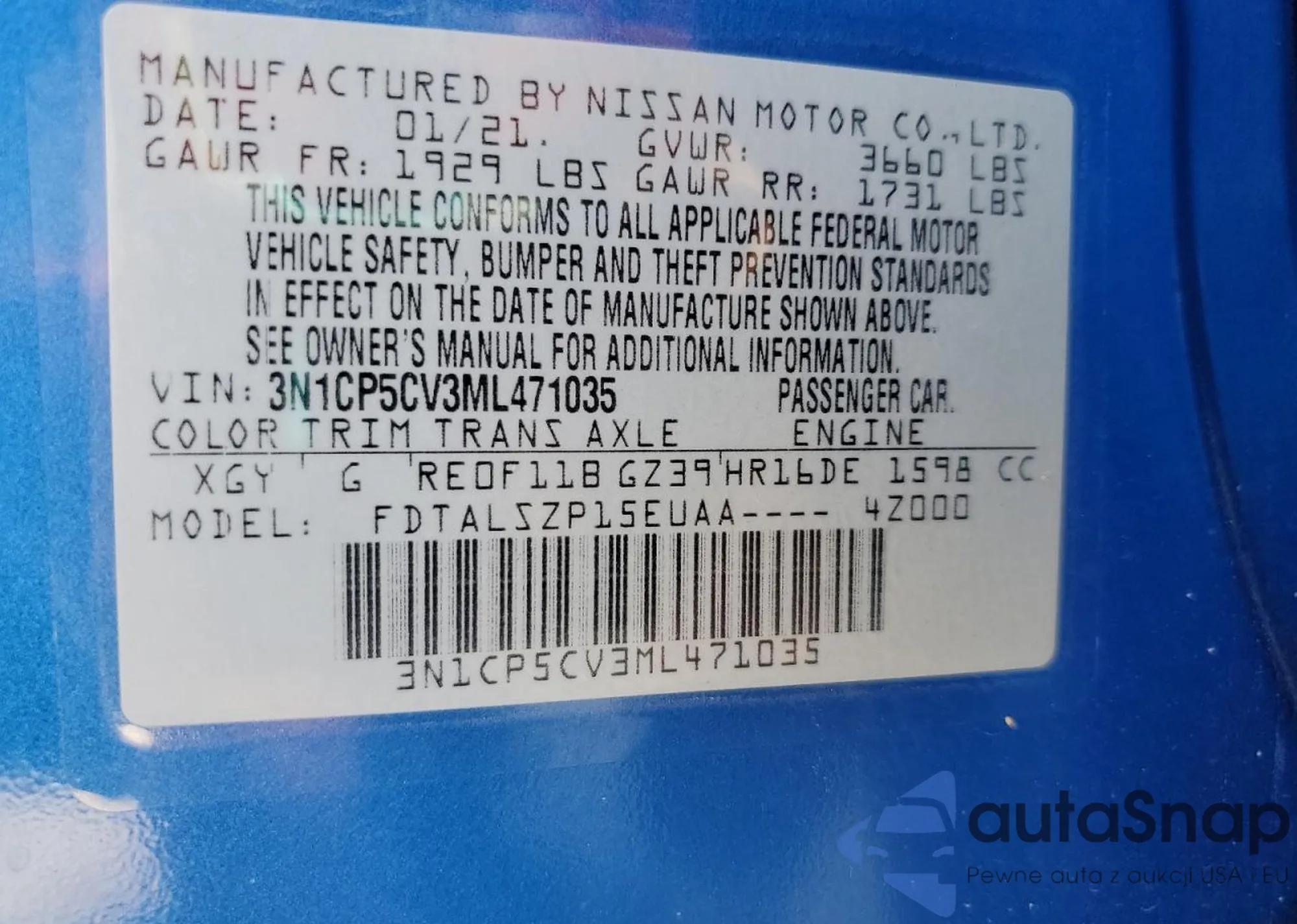 • VIN 3N1CP5CV3ML471035