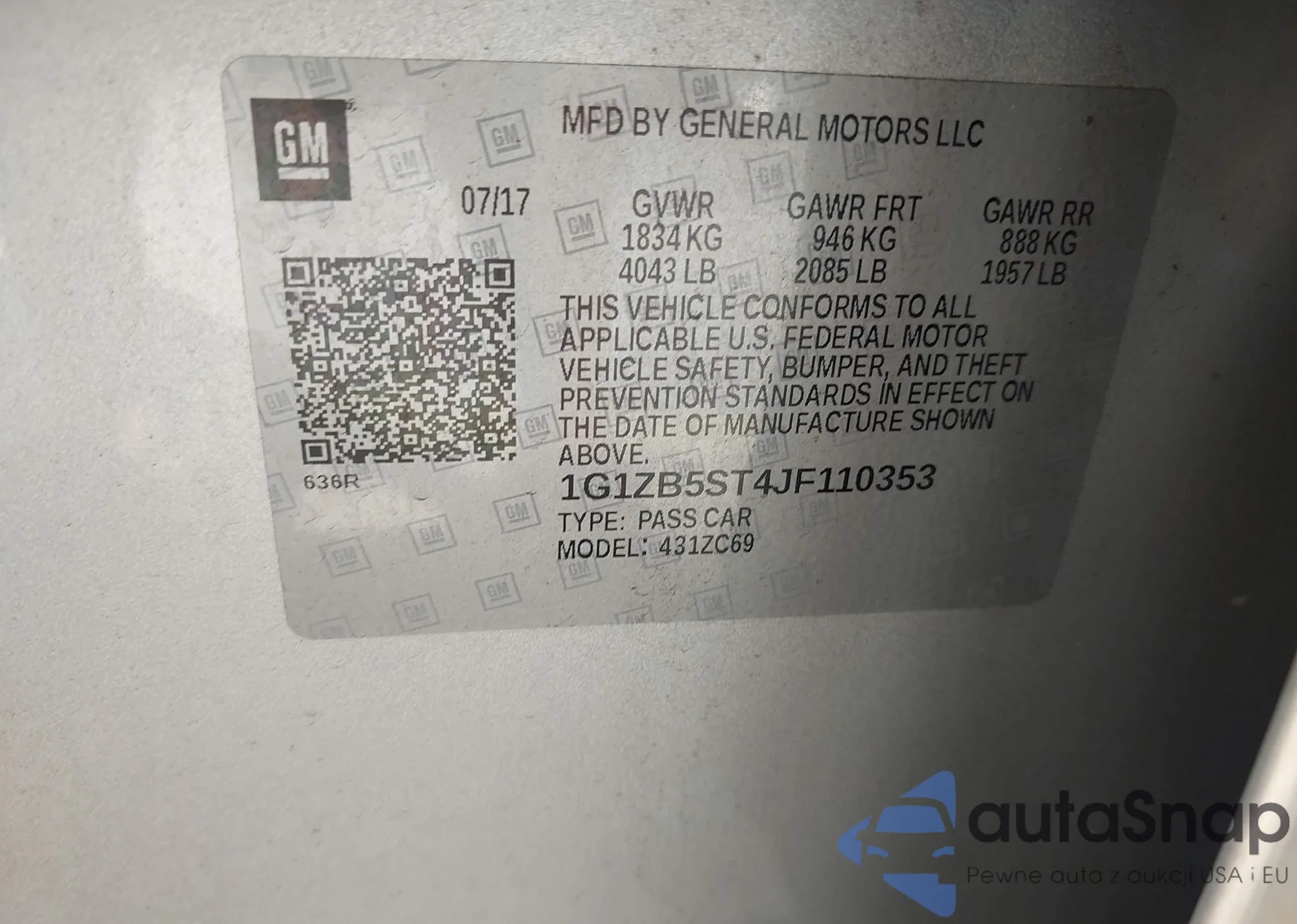 LOT: 42851235 VIN: 1GCGSBEN3J1102803