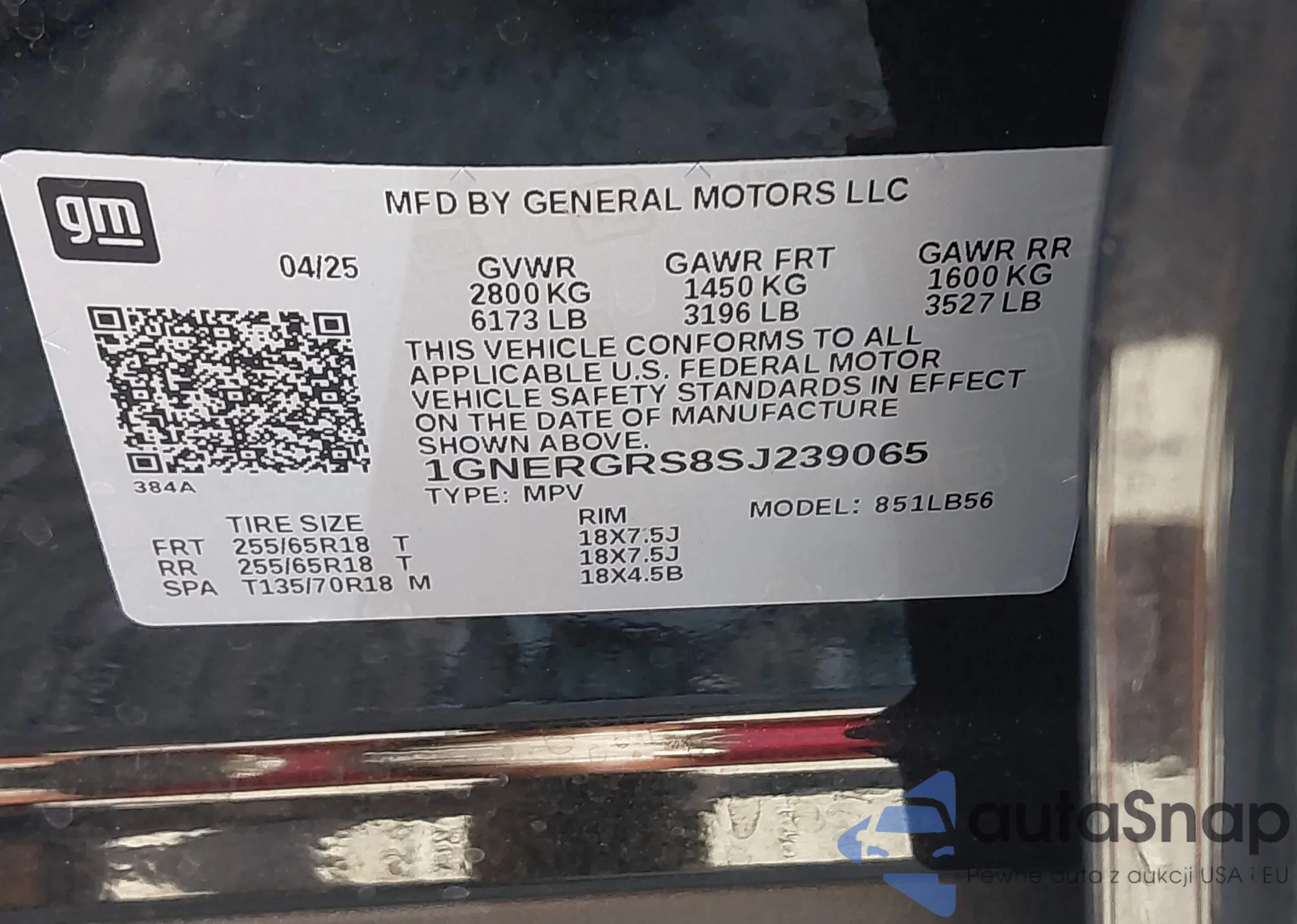 • VIN 1GNERGRS8SJ239065
