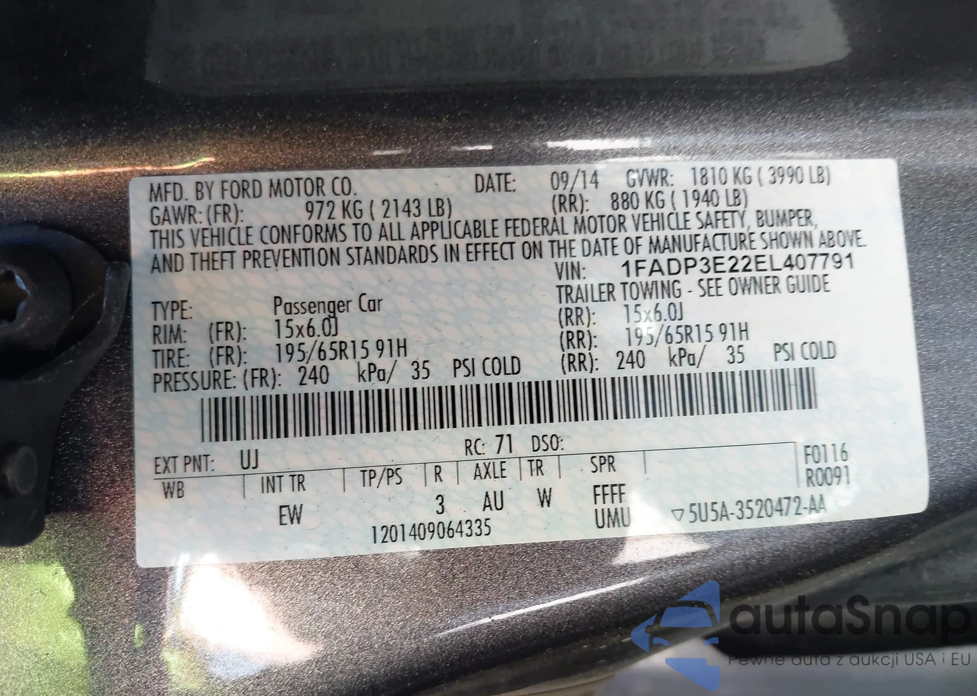 • VIN 1FADP3E22EL407791
