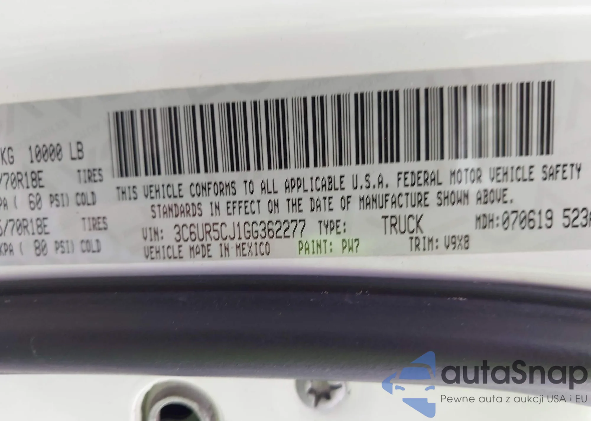 • VIN 3C6UR5CJ1GG362277