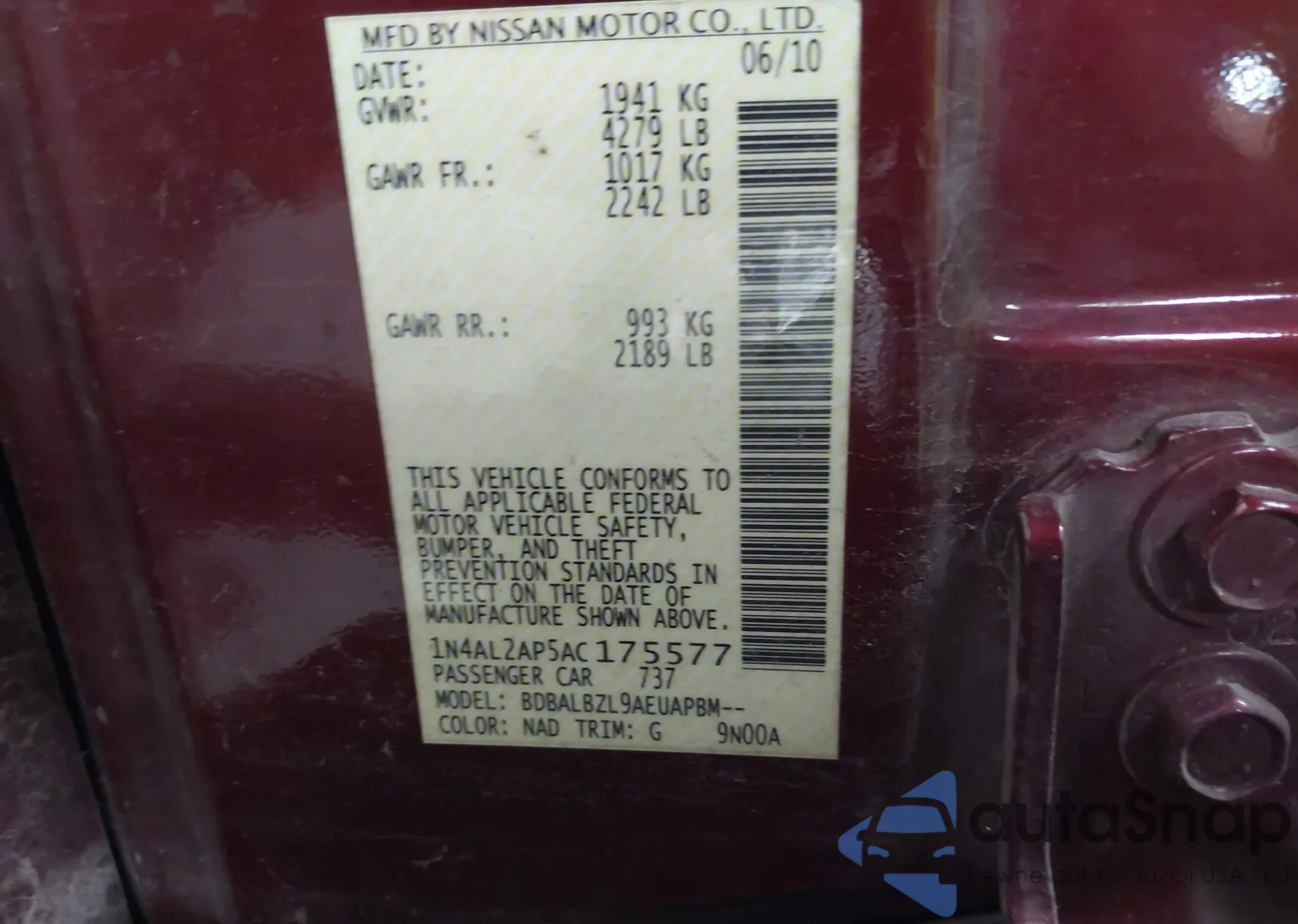 • VIN 1N4AL3AP6DN406050