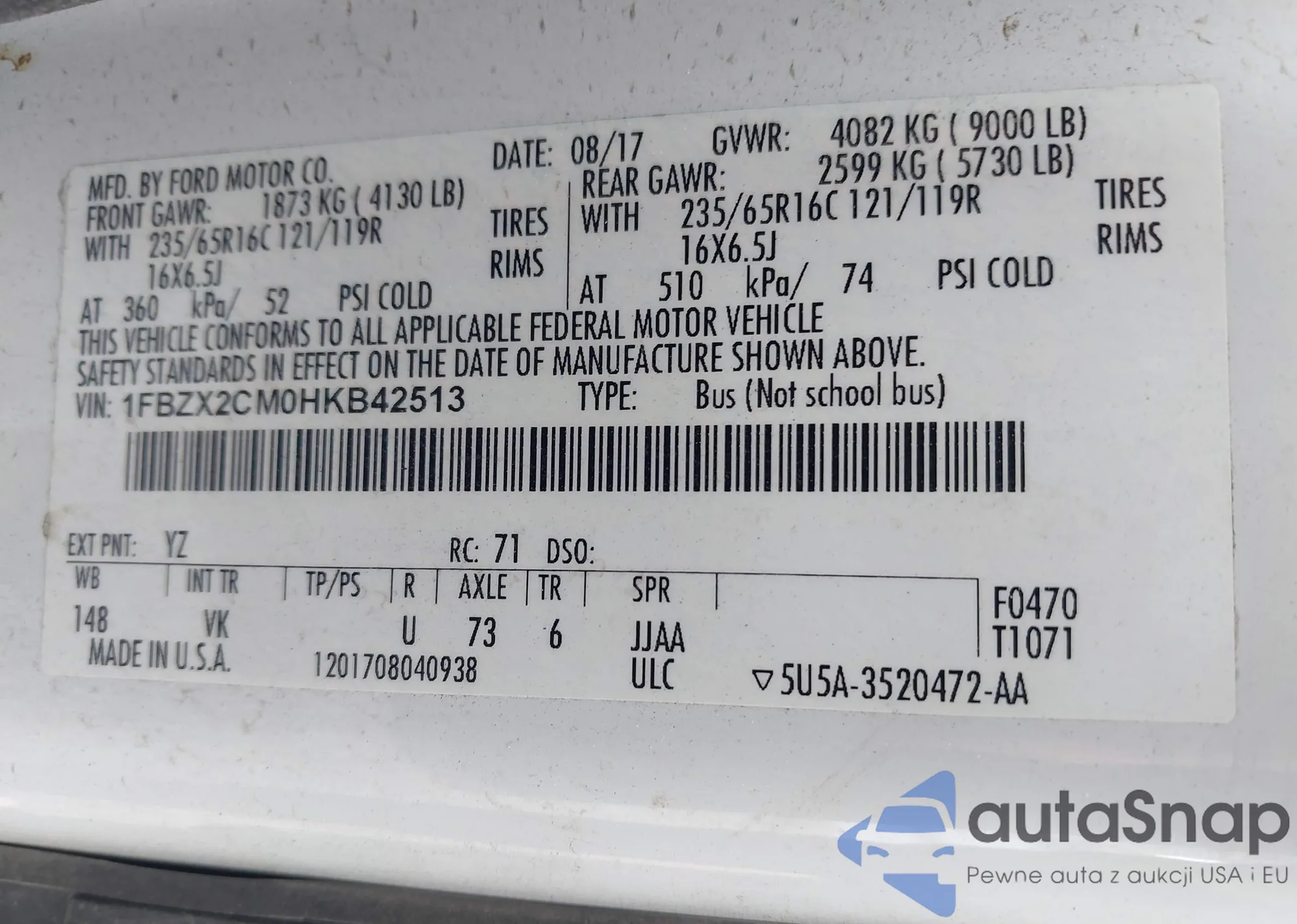 LOT: 43107859 VIN: 1FMSK7FH6MGA26815