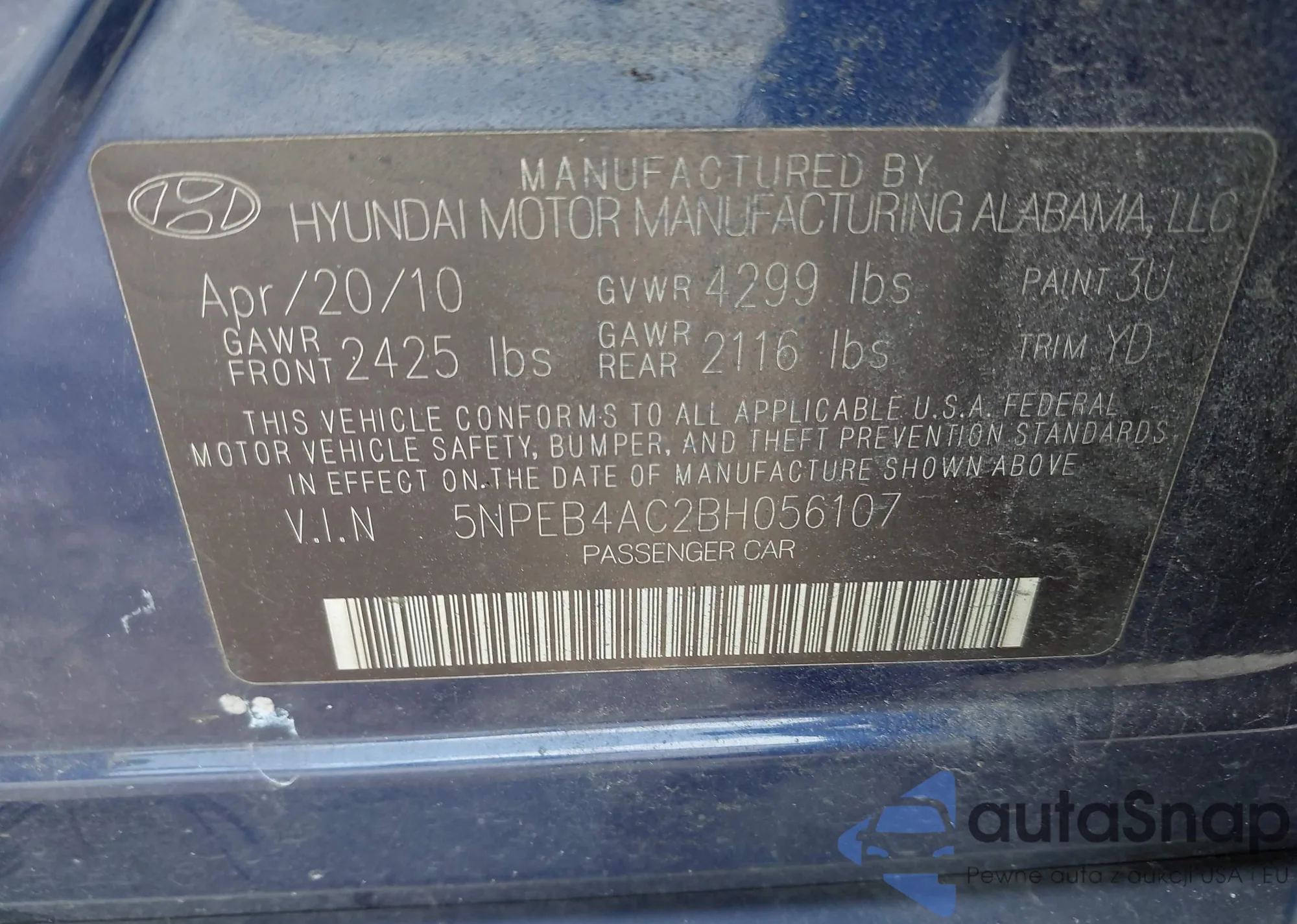 • VIN 5NPEB4AC2BH056107