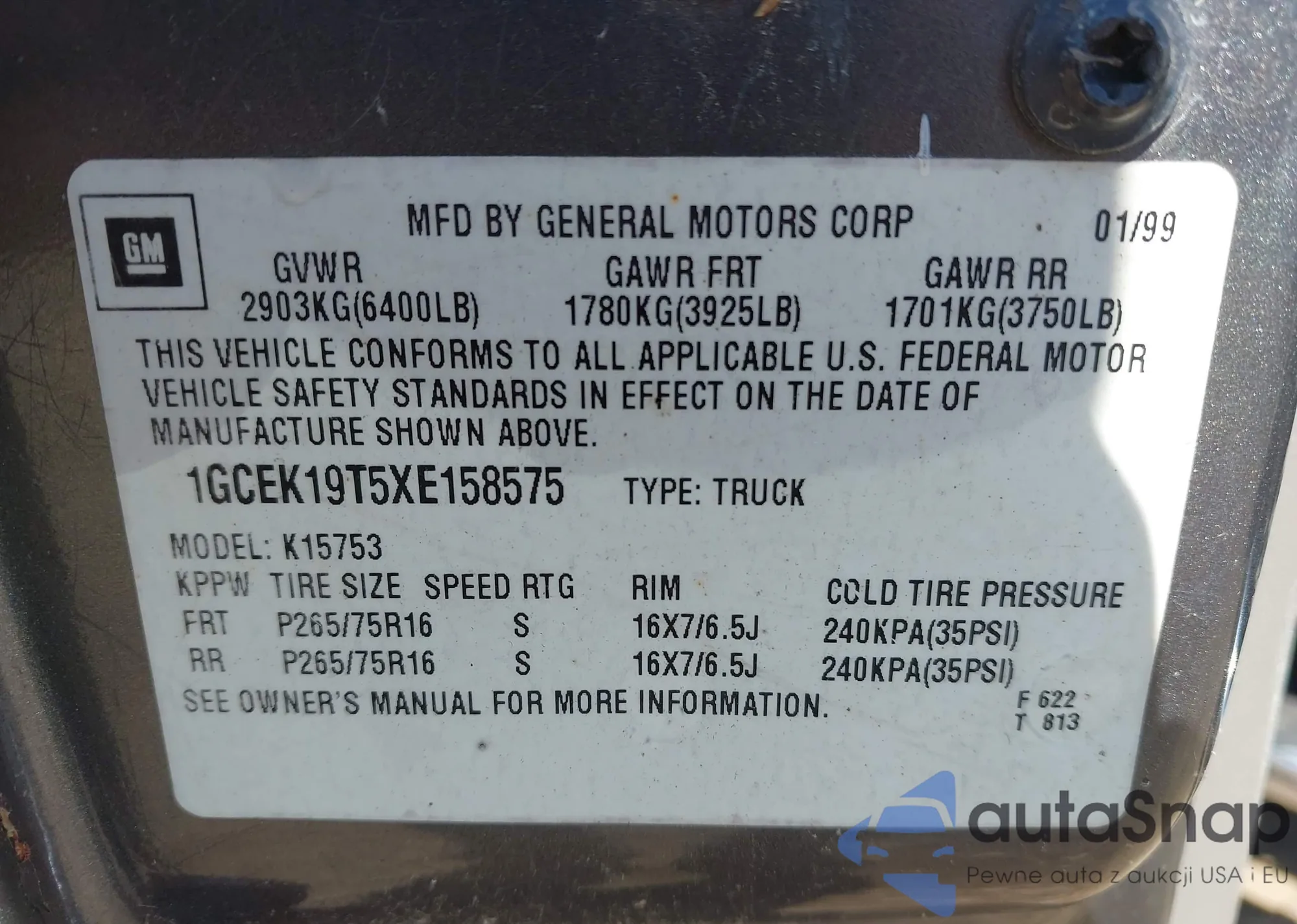 • VIN 1GCEK19T5XE158575