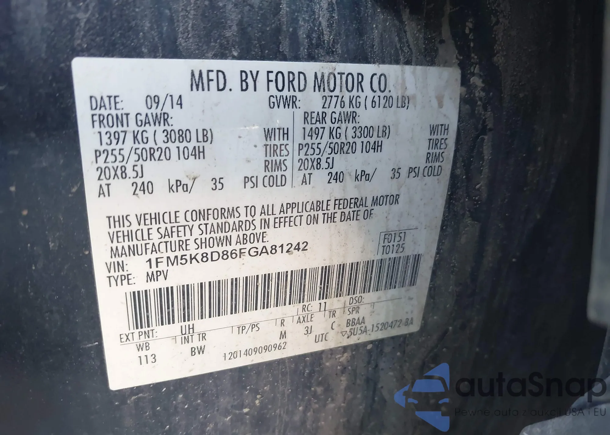 • VIN 1FM5K8D86FGA81242