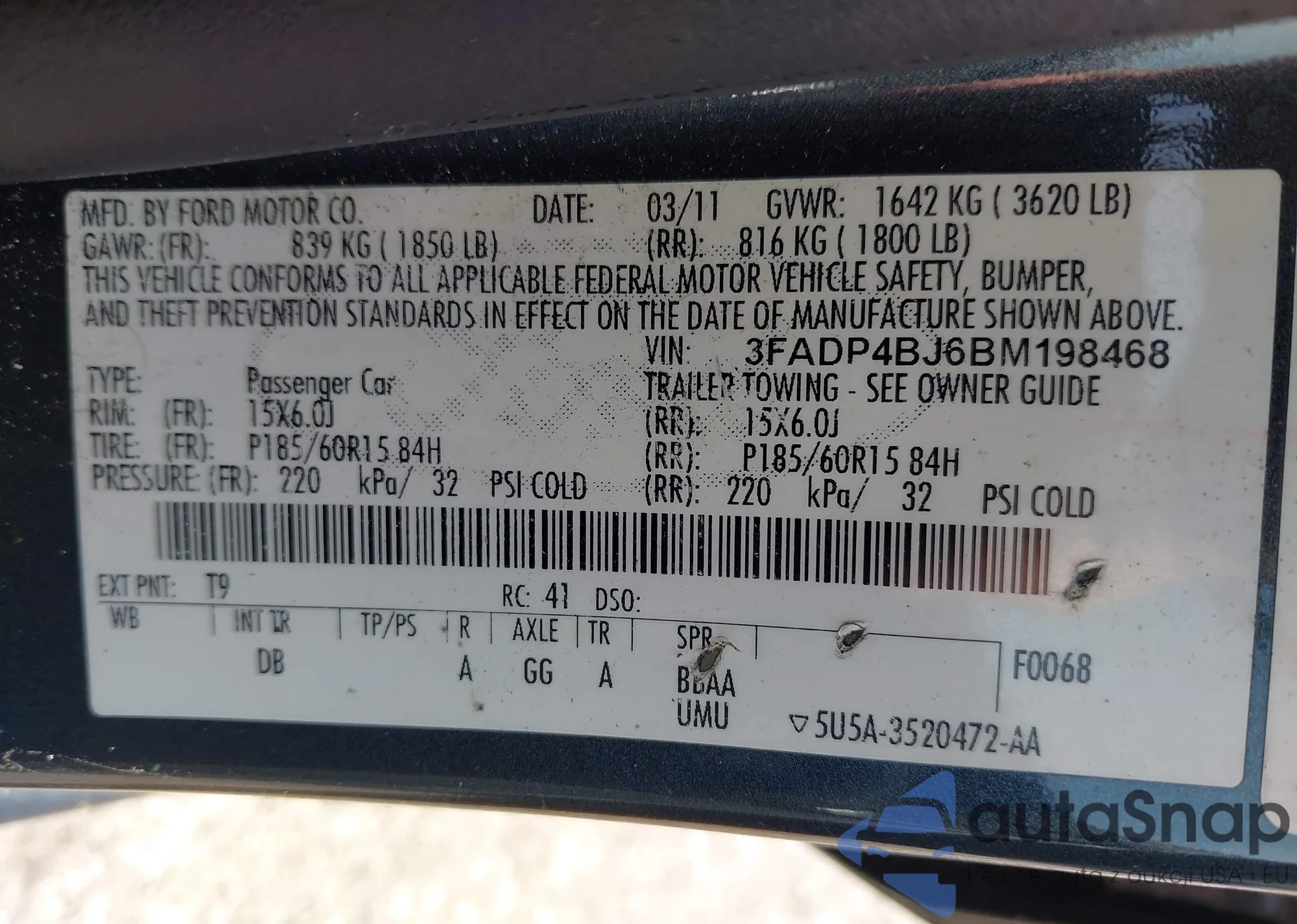 • VIN 3FADP4BJ6BM198468