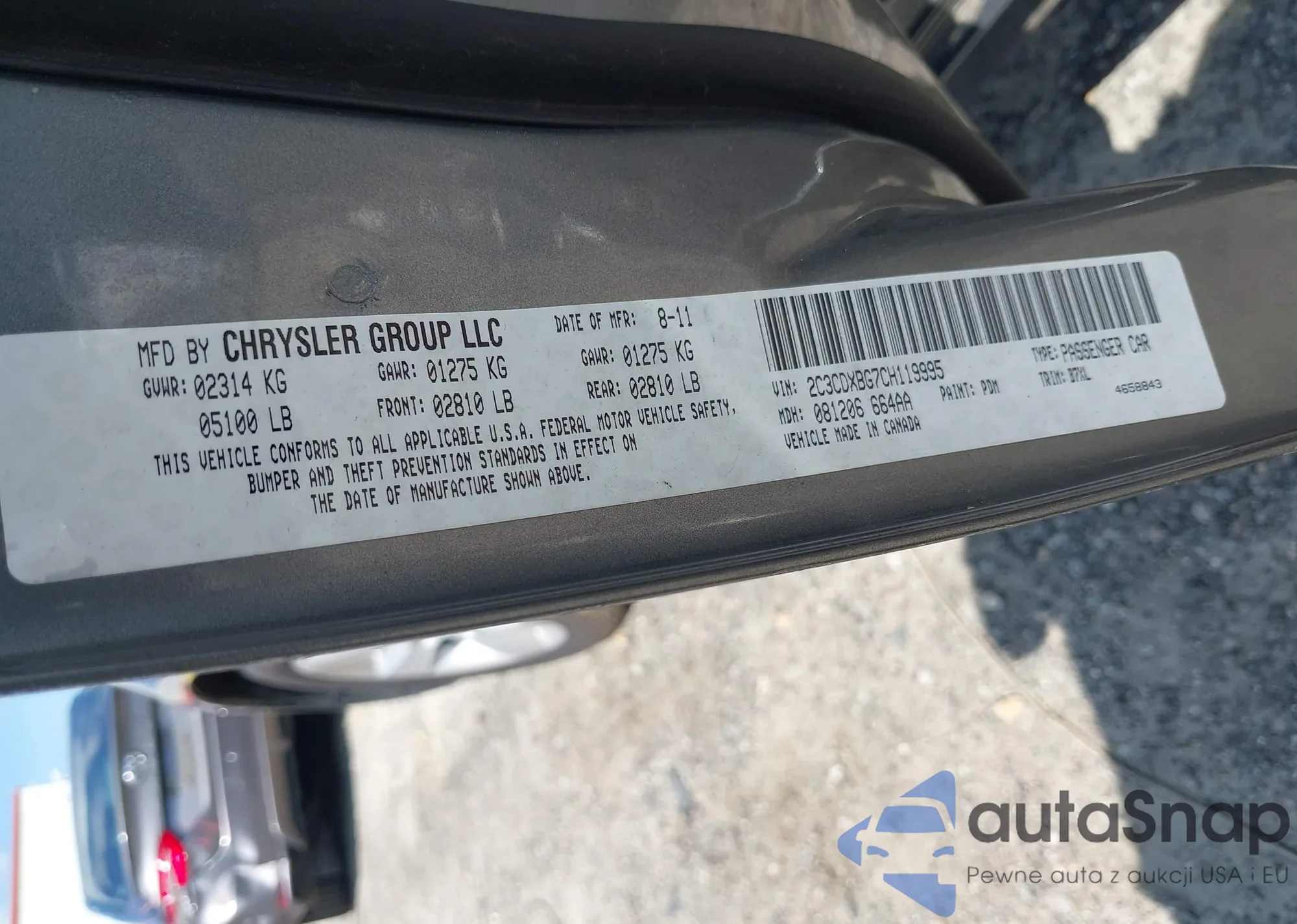 LOT: 42557567 VIN: 2C3CDXBG7CH119995