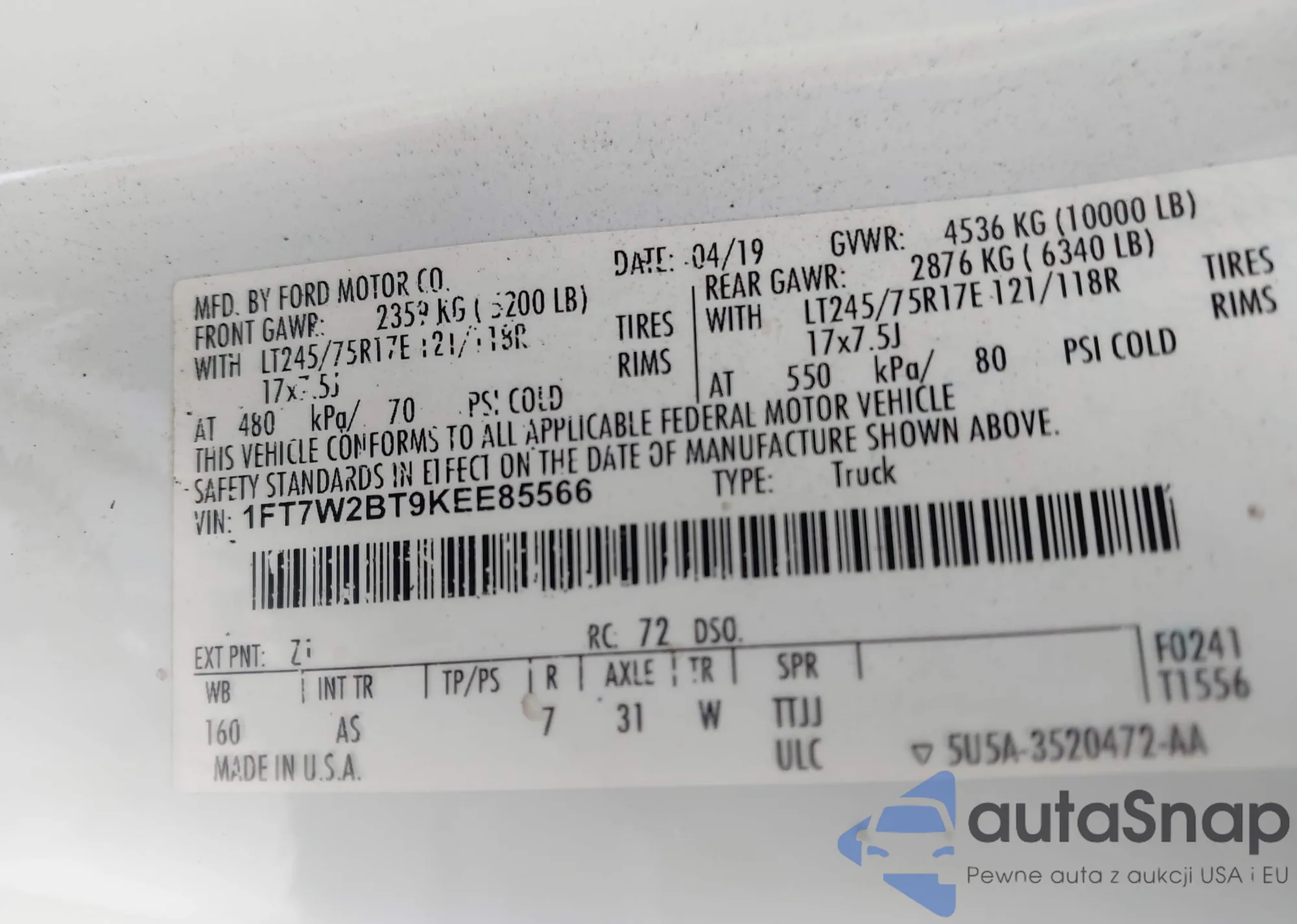 • VIN 1FT7W2BT9KEE85566