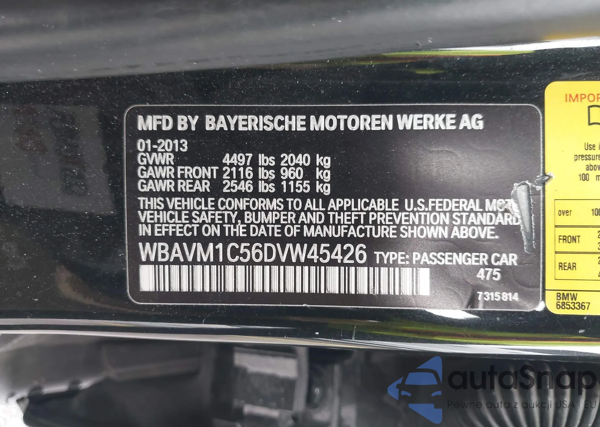 LOT: 42996487 VIN: WBA4A5C54FD410351