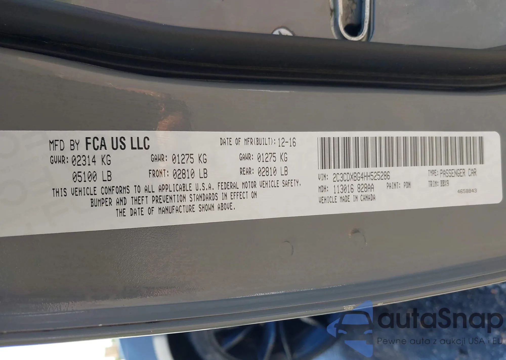 • VIN 2C3CDXBG4HH525286
