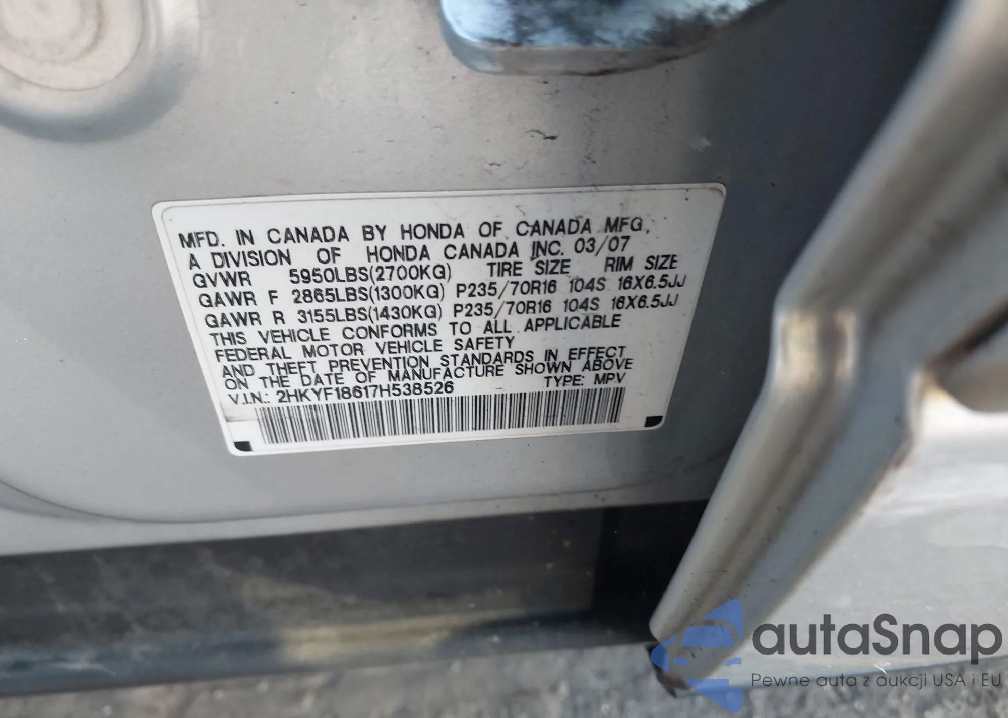 LOT: 43125672 VIN: 1HGCP2F43BA105824
