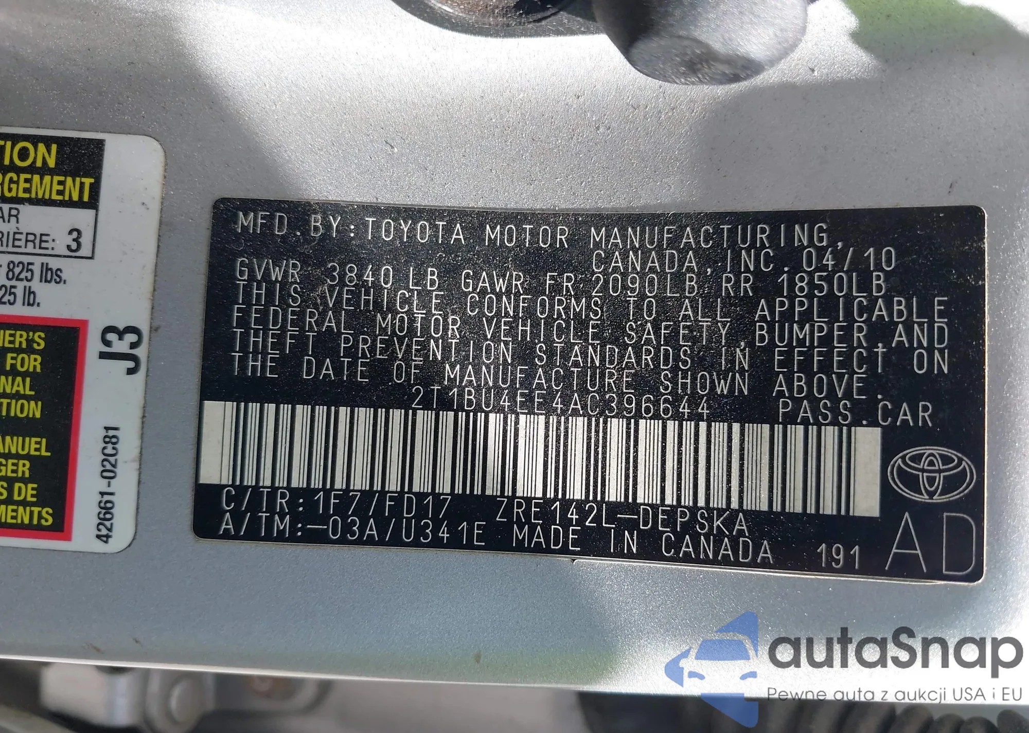 • VIN 2T1BU4EE4AC396644