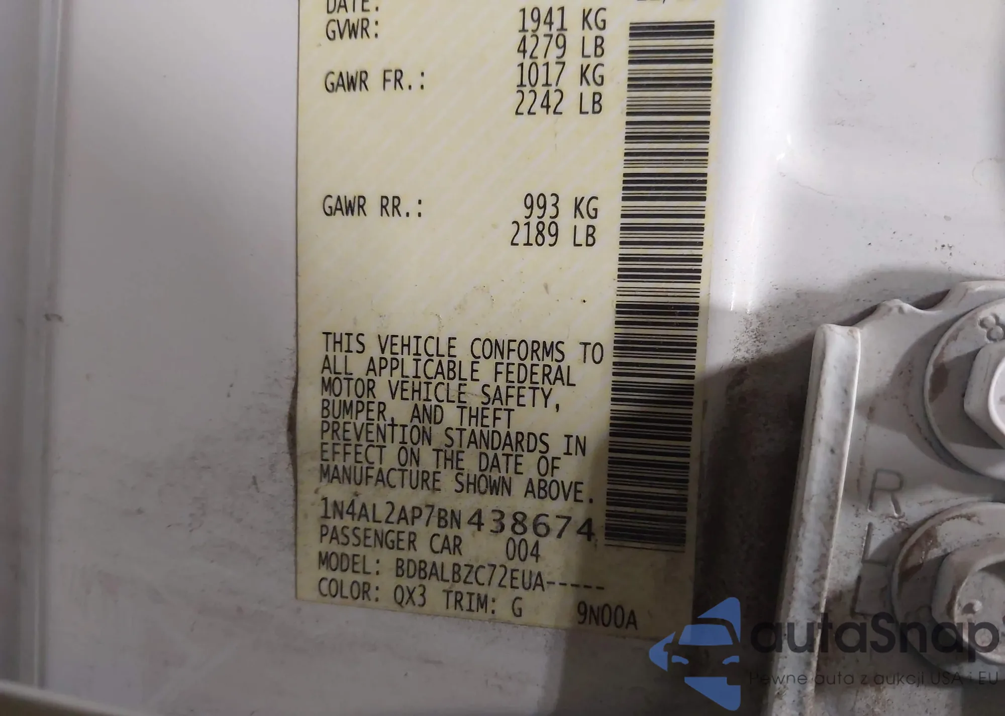 • VIN 1N4AL2AP7BN438674