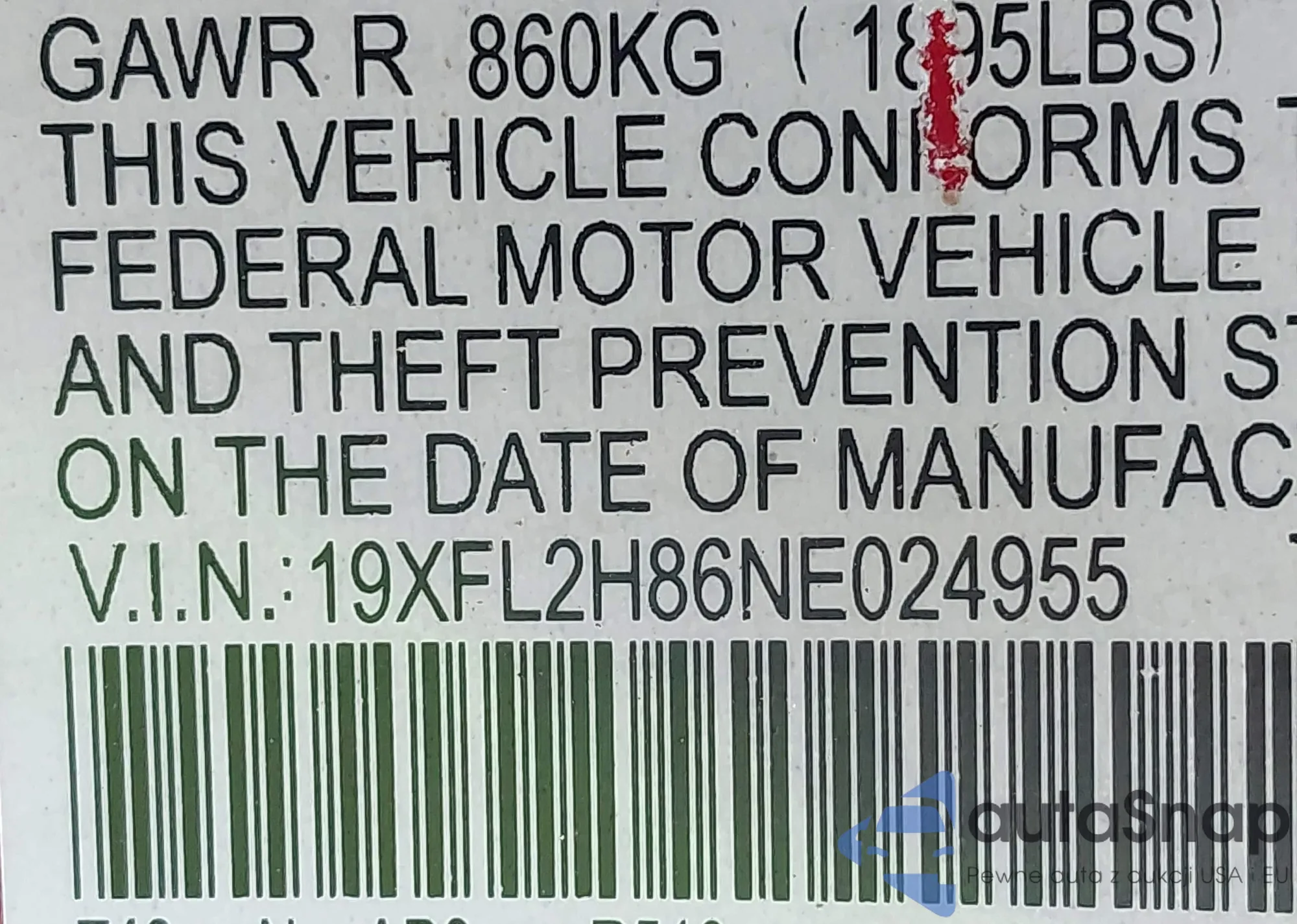 • VIN 19XFL2H86NE024955
