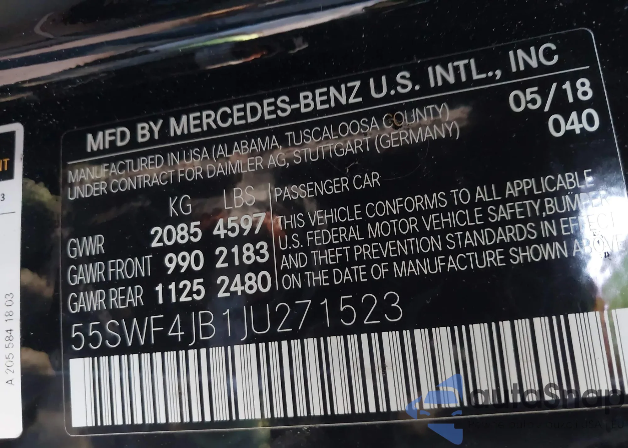 • VIN 55SWF4JB1JU271523