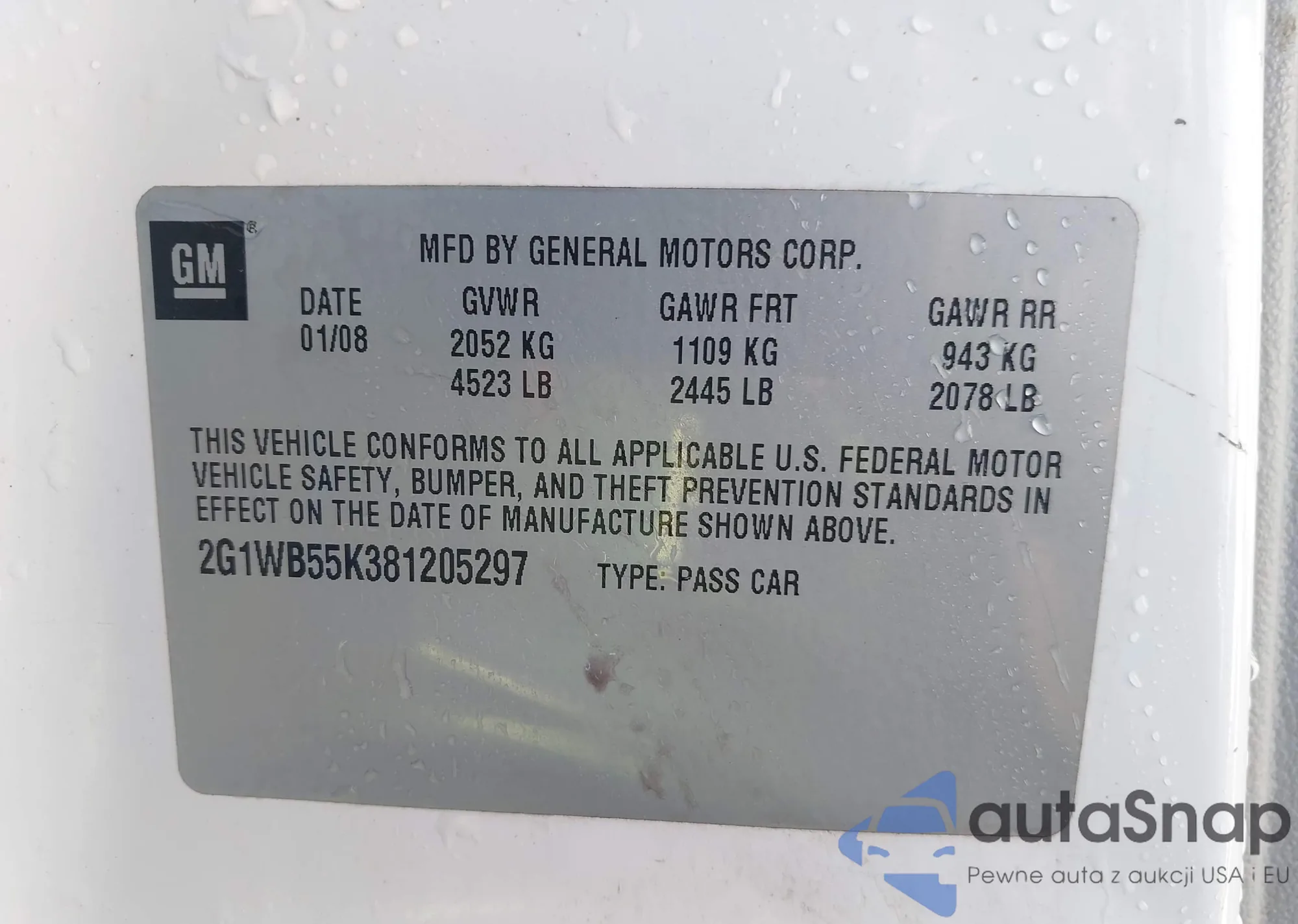 LOT: 43359460 VIN: 2G1WB55K381205297