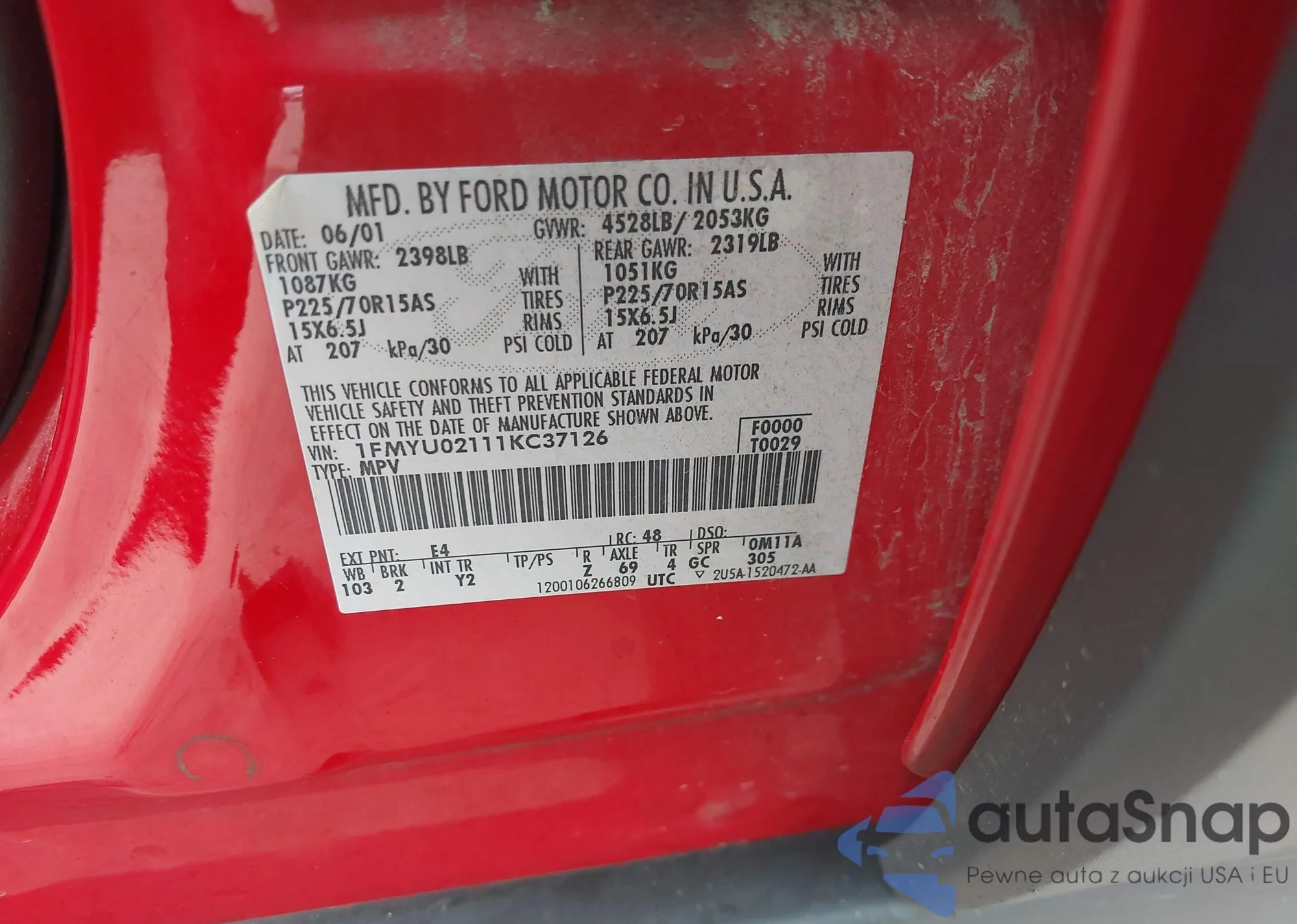 LOT: 43342256 VIN: 1FMYU02111KC37126