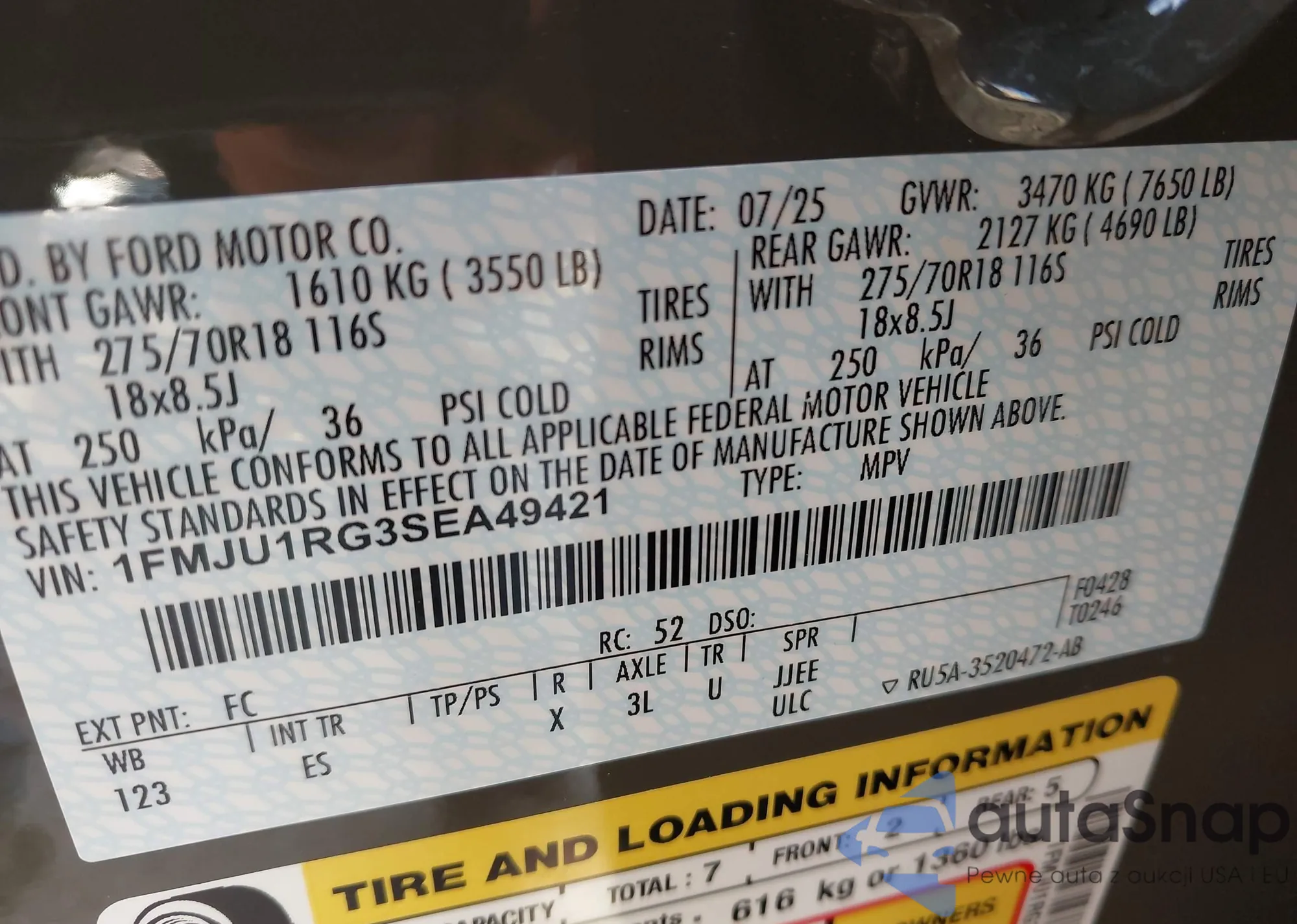 • VIN 1FMJU1RG3SEA49421