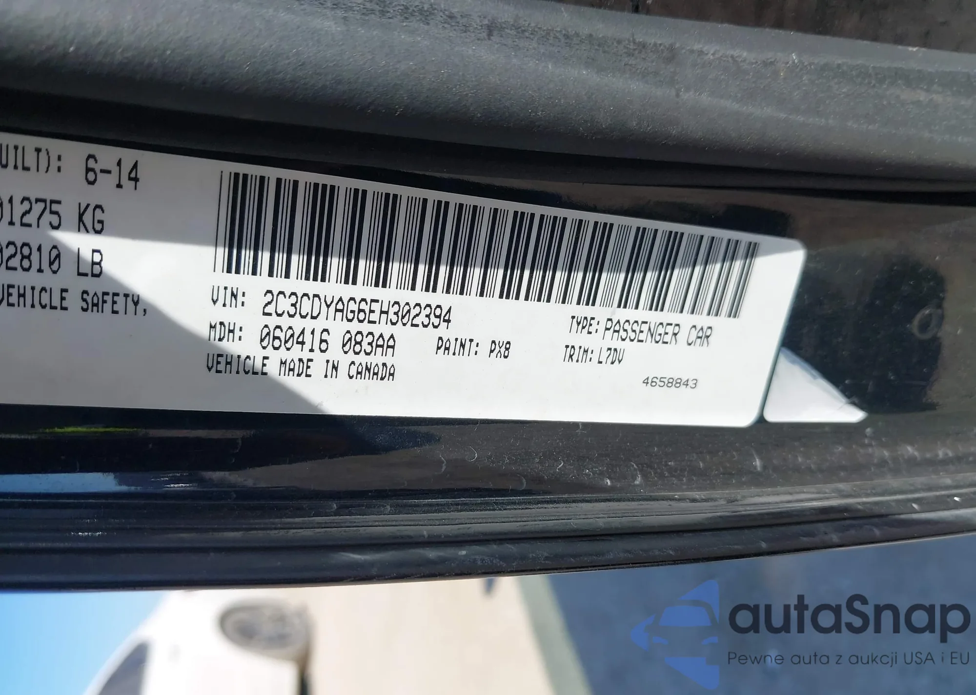 LOT: 43368691 VIN: 2C3CDYAG6EH302394