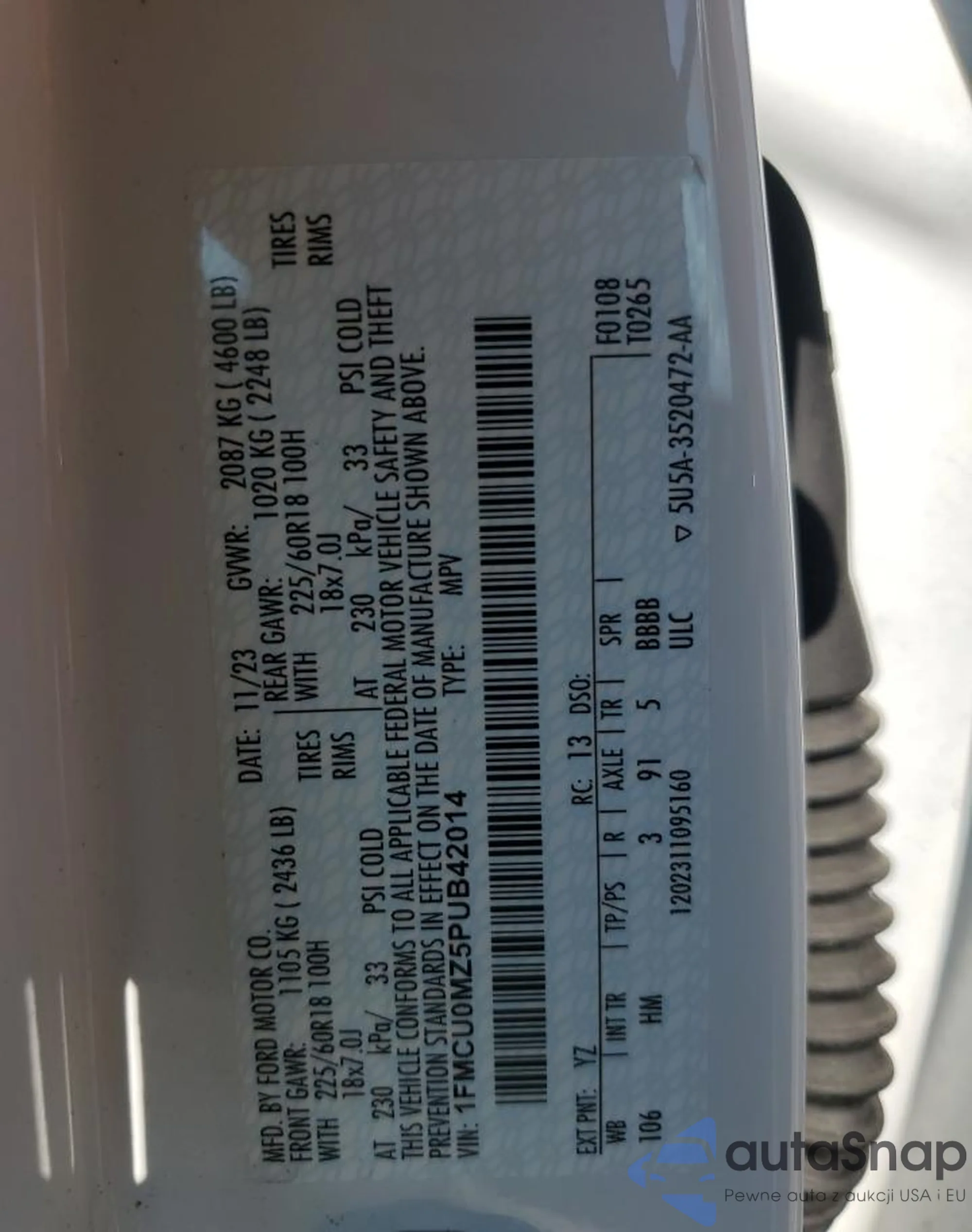 • VIN 1FMCU0MZ5PUB42014