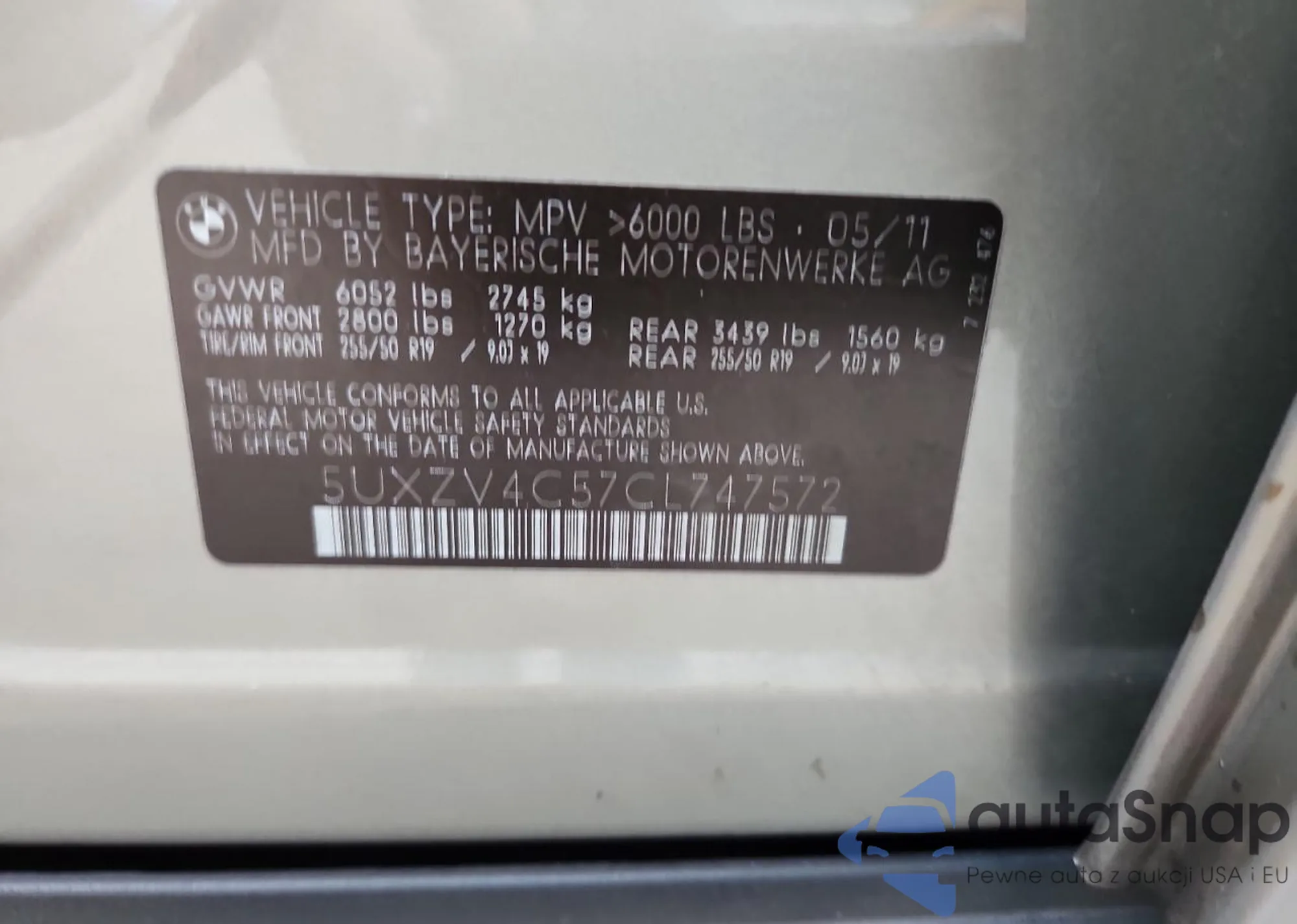 • VIN 5UXZV4C57CL747572