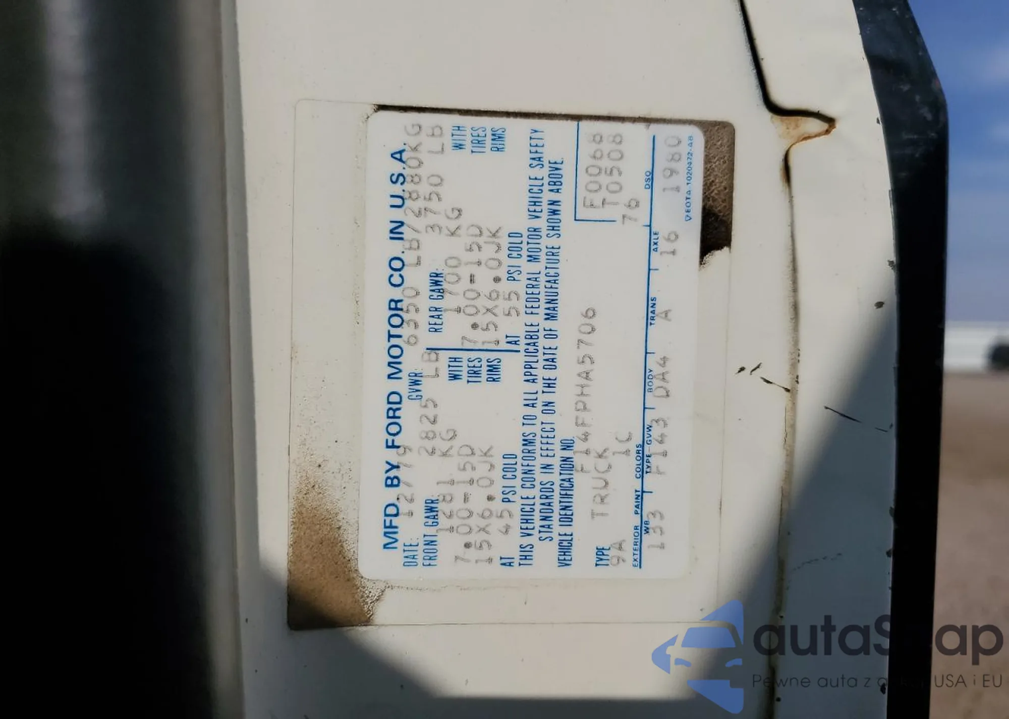 1980 Ford F-150 z USA, uszkodzony, nr VIN 000000F14FPHA5706