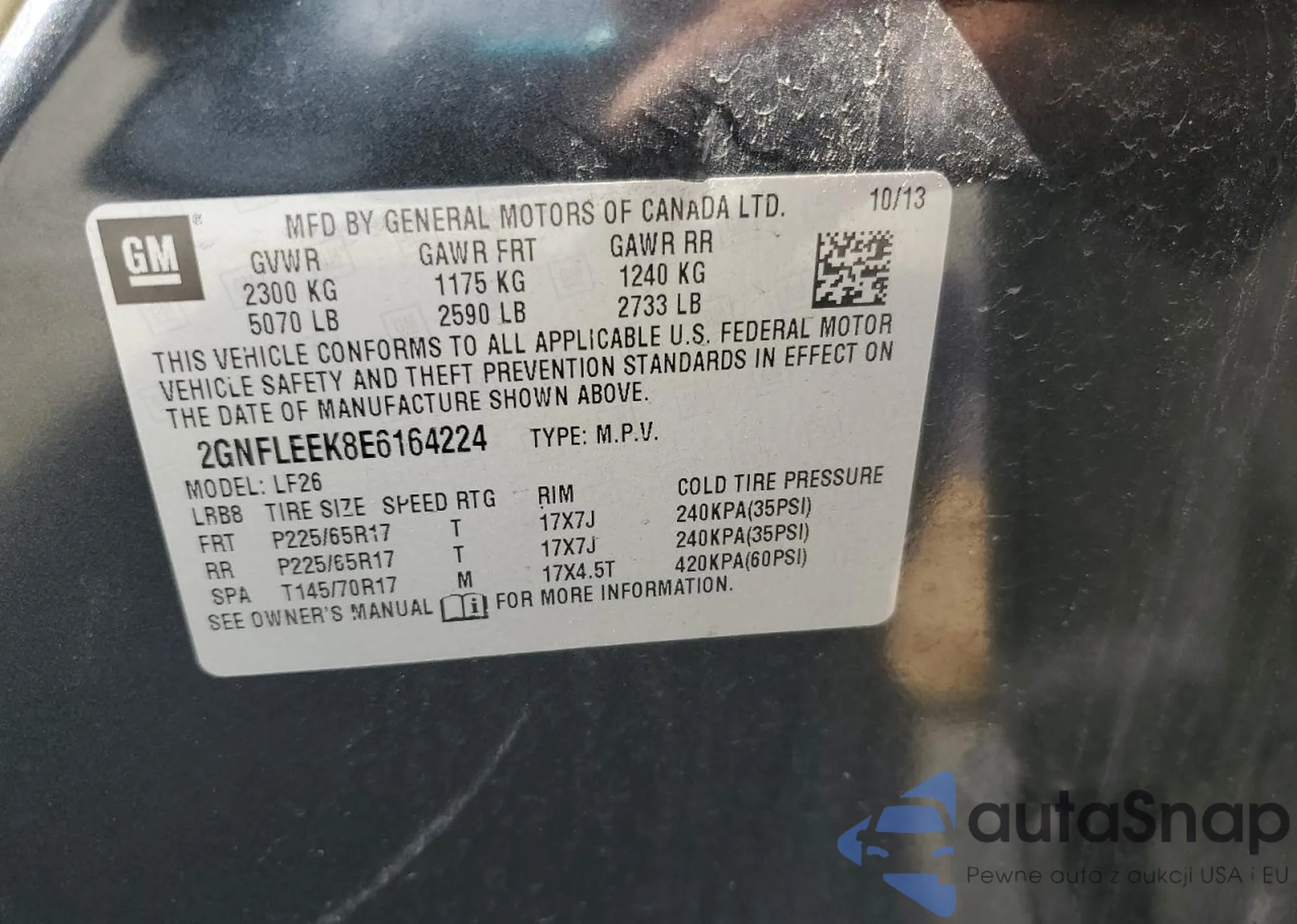 • VIN 2GNFLEEK8E6164224