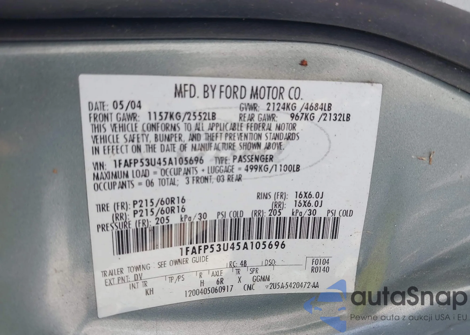 LOT: 43214566 VIN: 00004Z87T5H546912