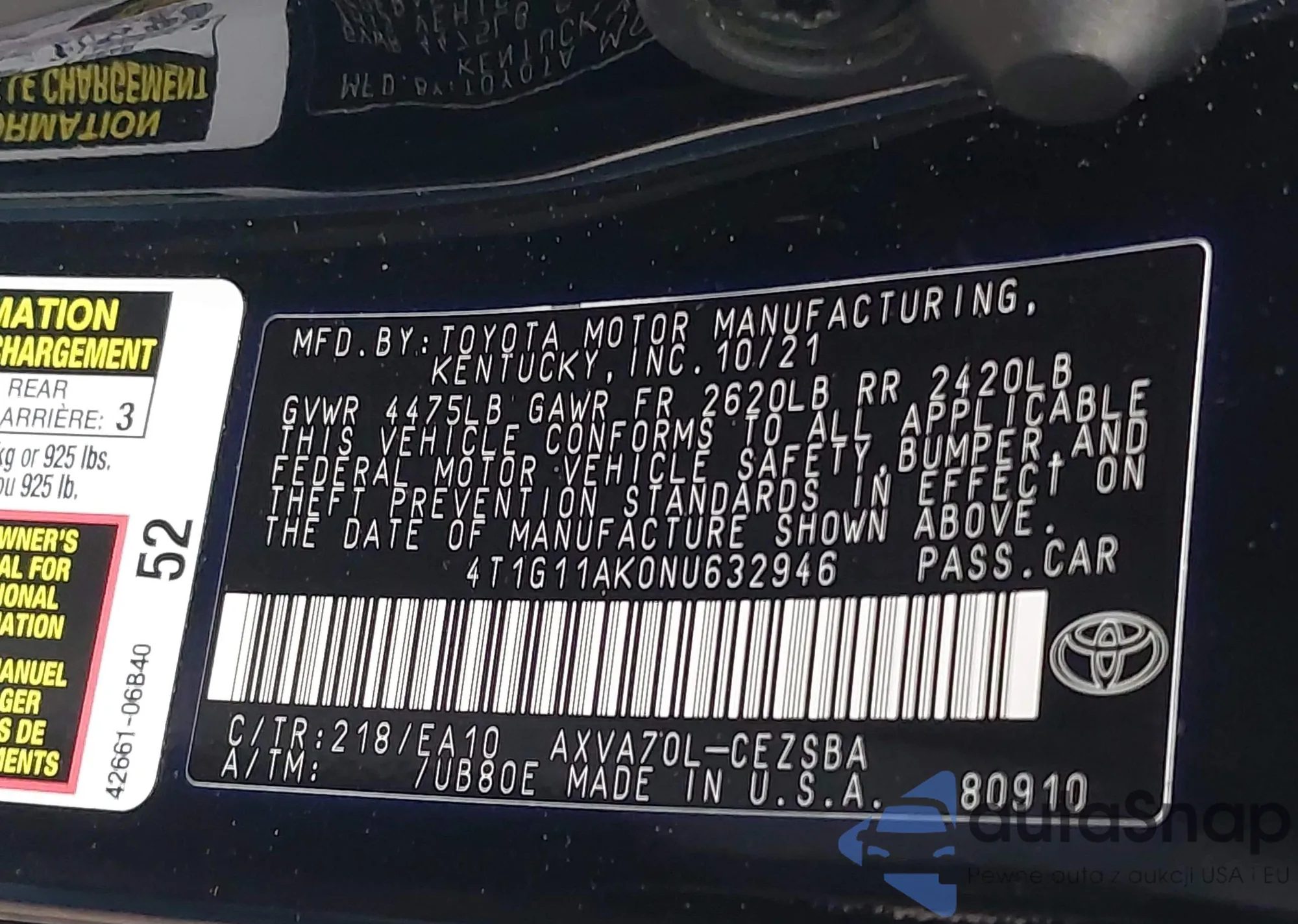 • VIN 4T1G11AK0NU632946