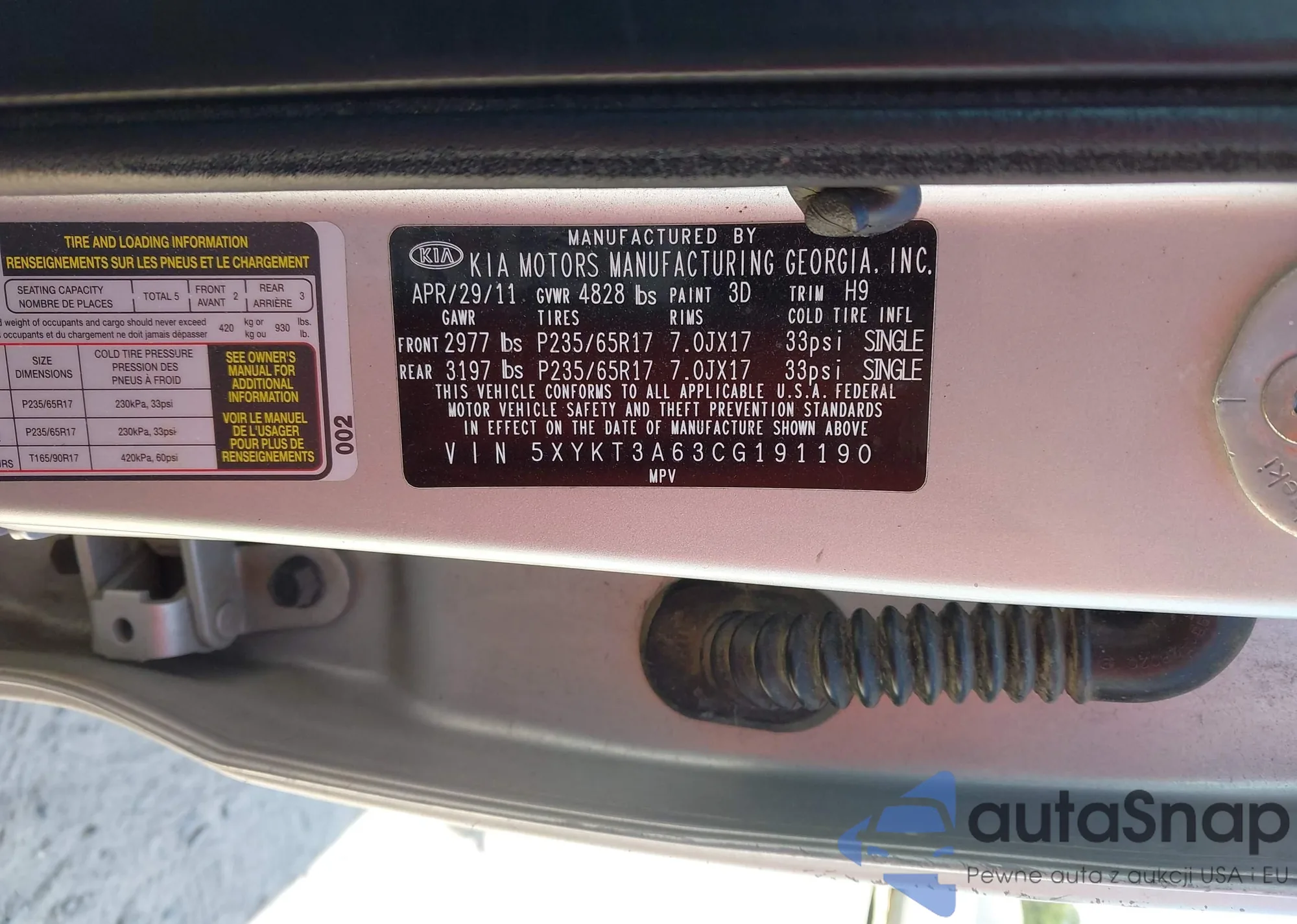 • VIN 5XYKT3A63CG191190