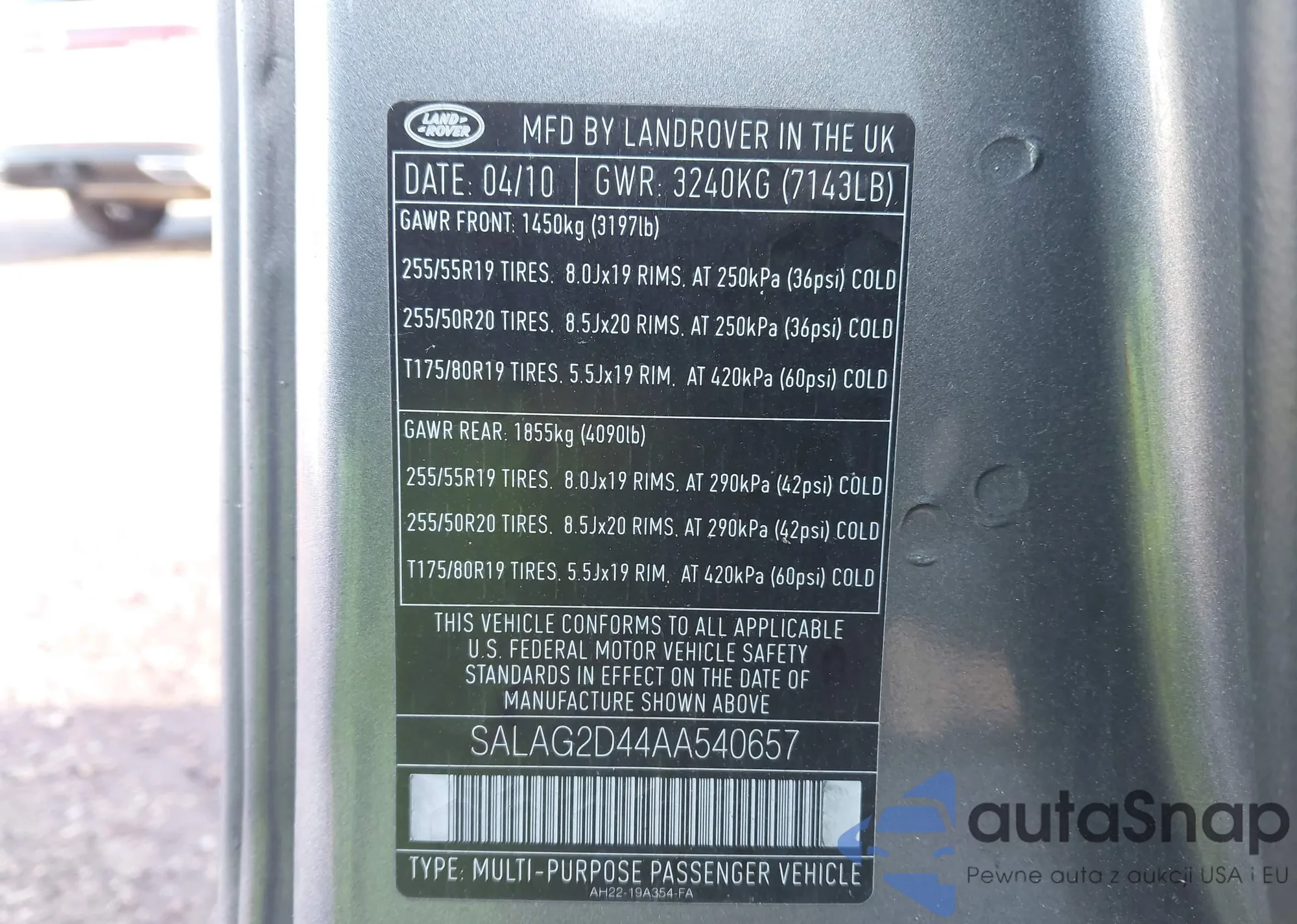 • VIN SALAG2D44AA540657