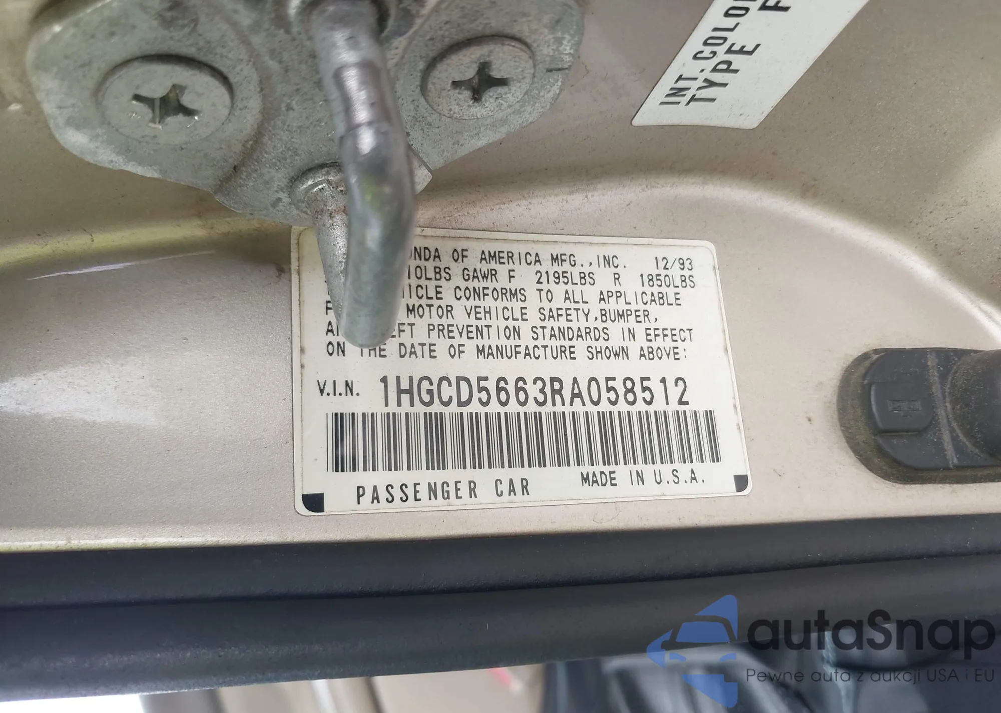 LOT: 43284949 VIN: 1HGCD5663RA058512