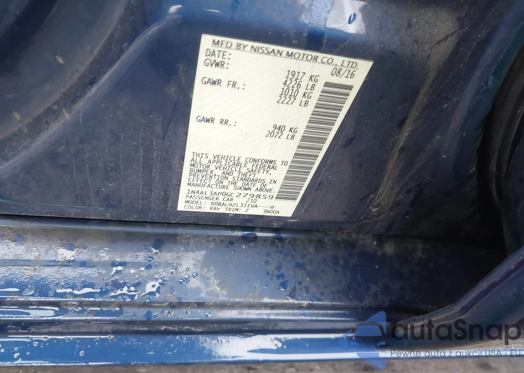 LOT: 43132739 VIN: 1N4AL3AP0GC279859