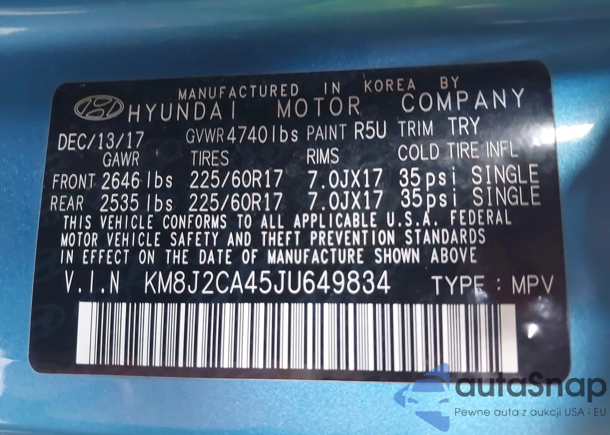 • VIN KM8J2CA45JU649834