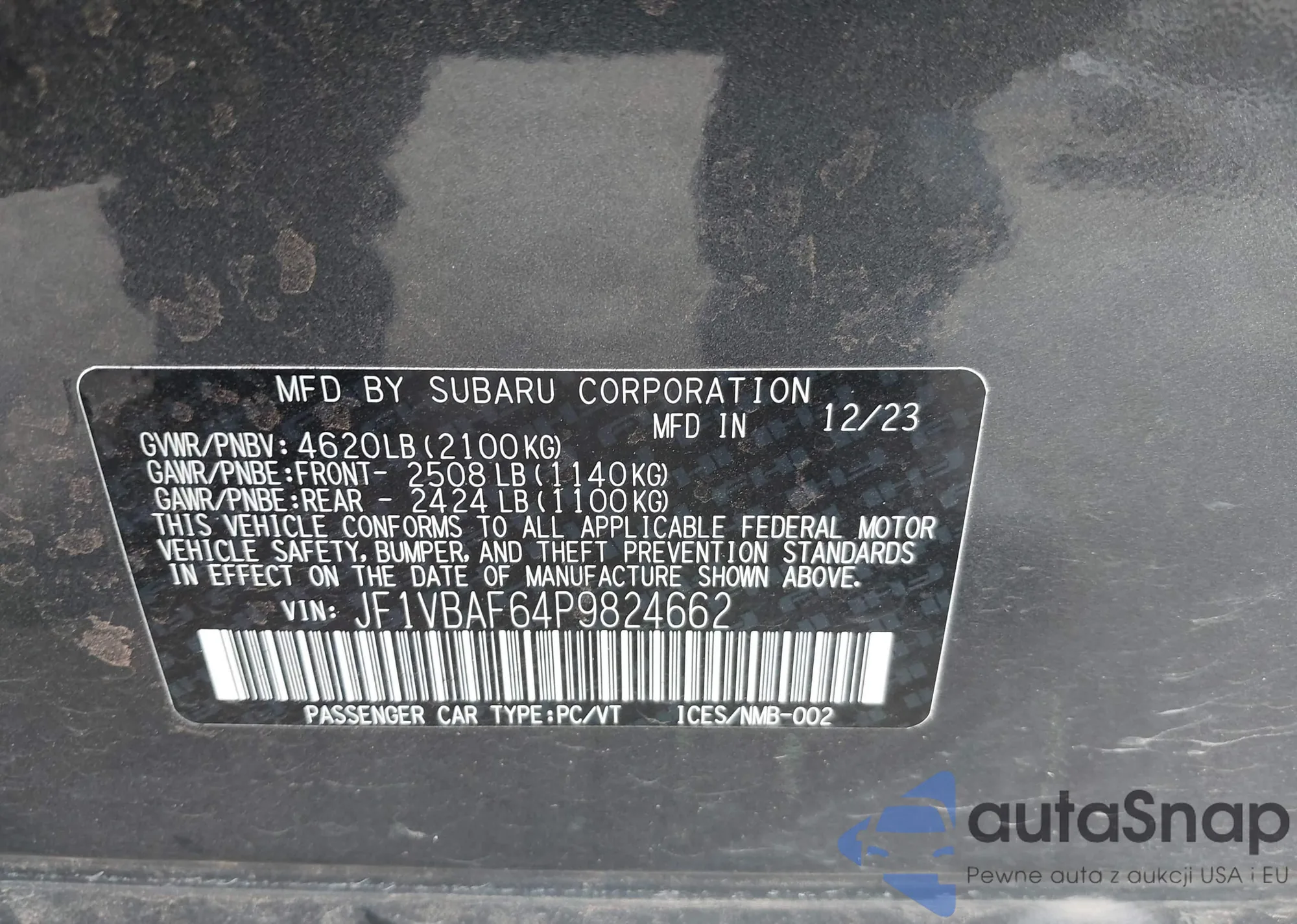 LOT: 43231355 VIN: JF1VBAF64P9824662