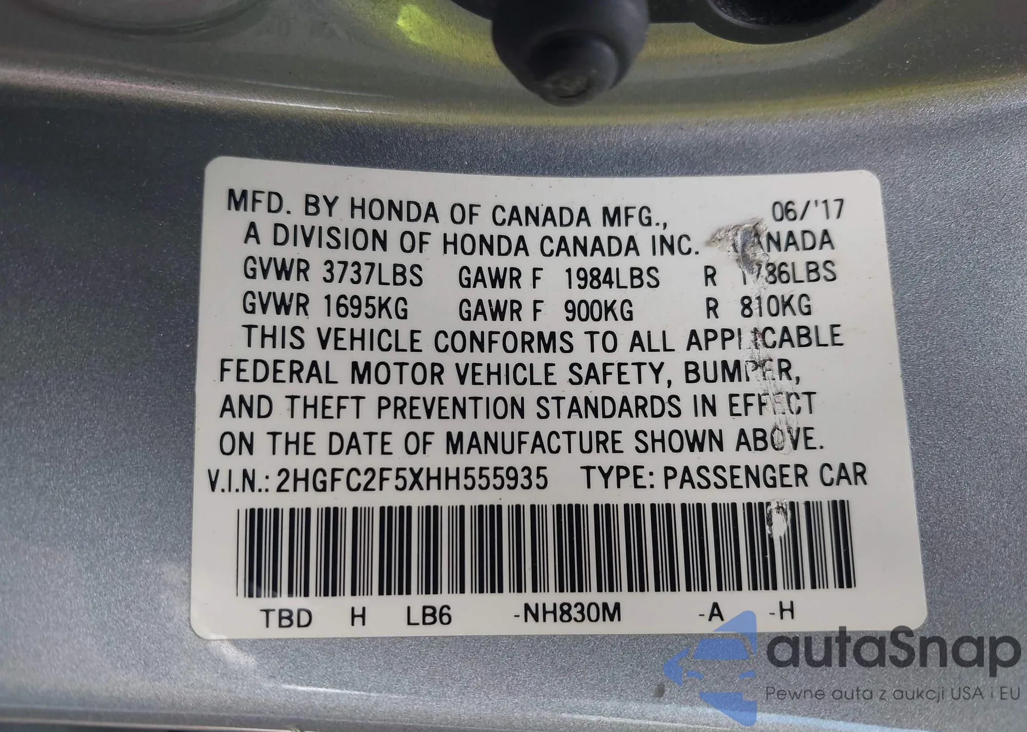 • VIN 2HGFE1F99RH317177