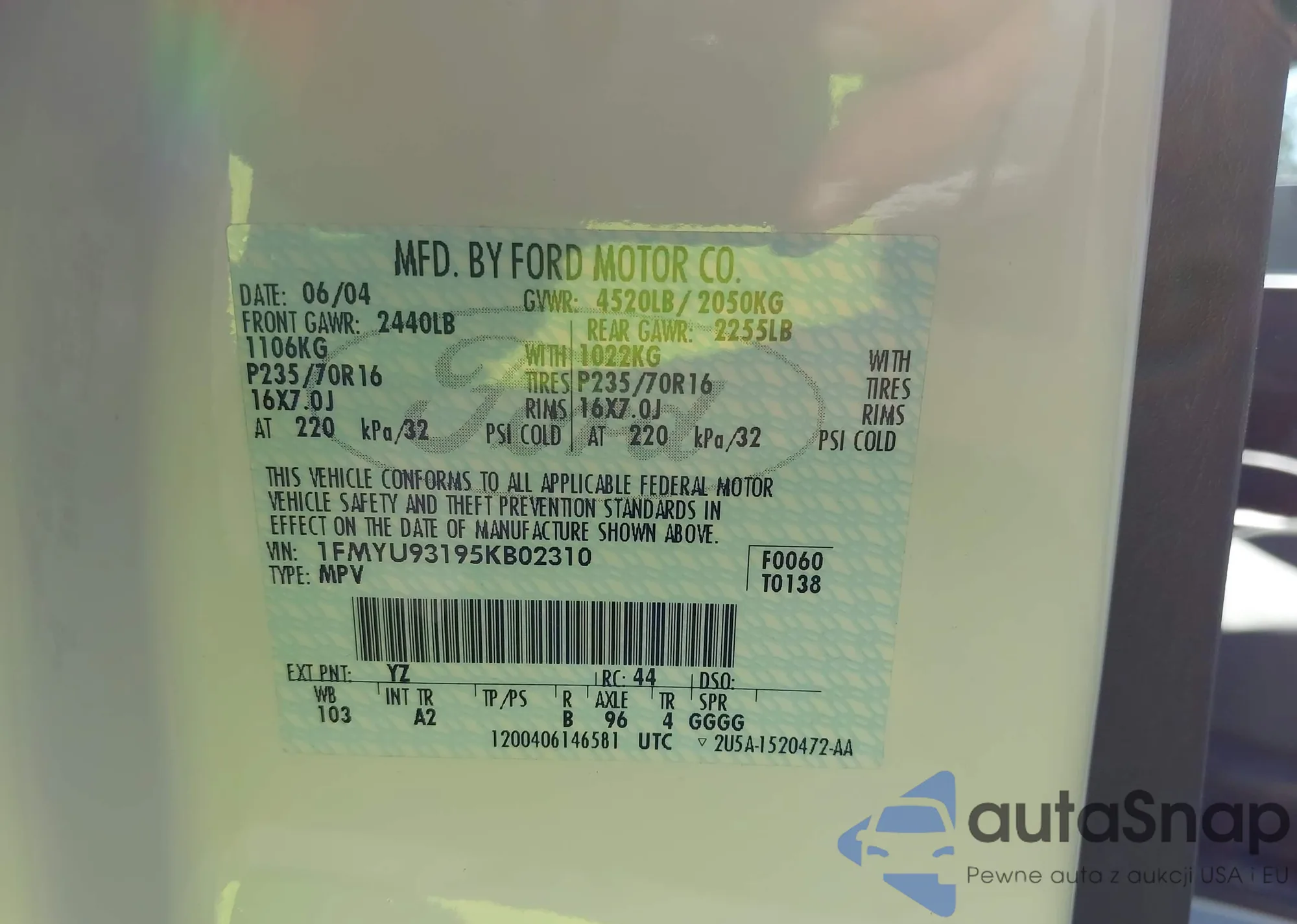 • VIN 2FMPK3K95HBB08562