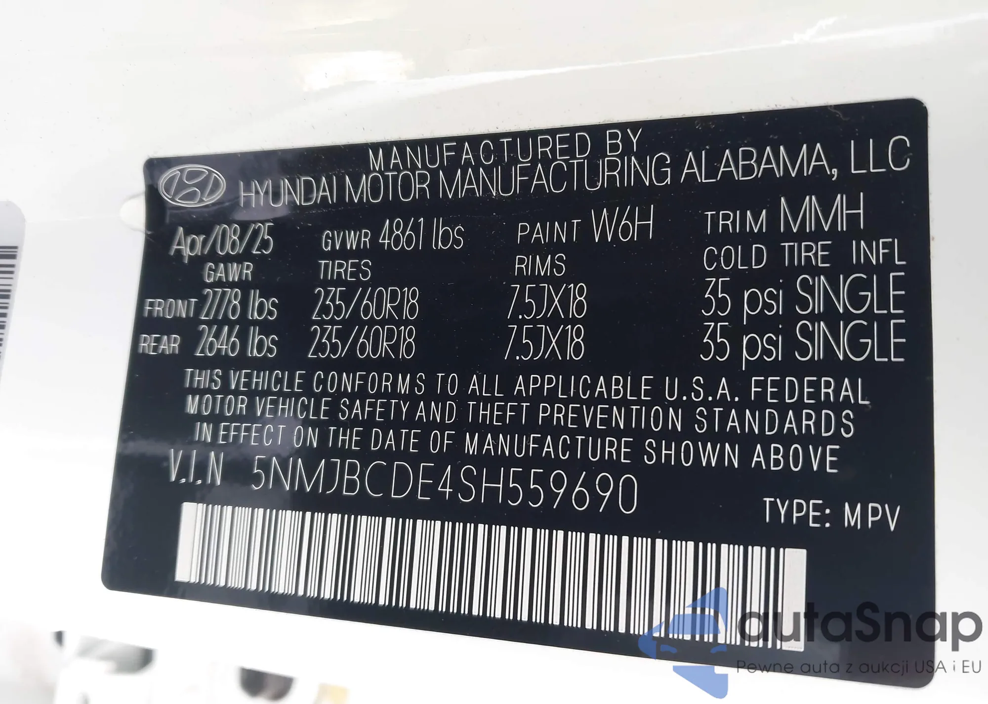 • VIN 5NMJBCDE4SH559690