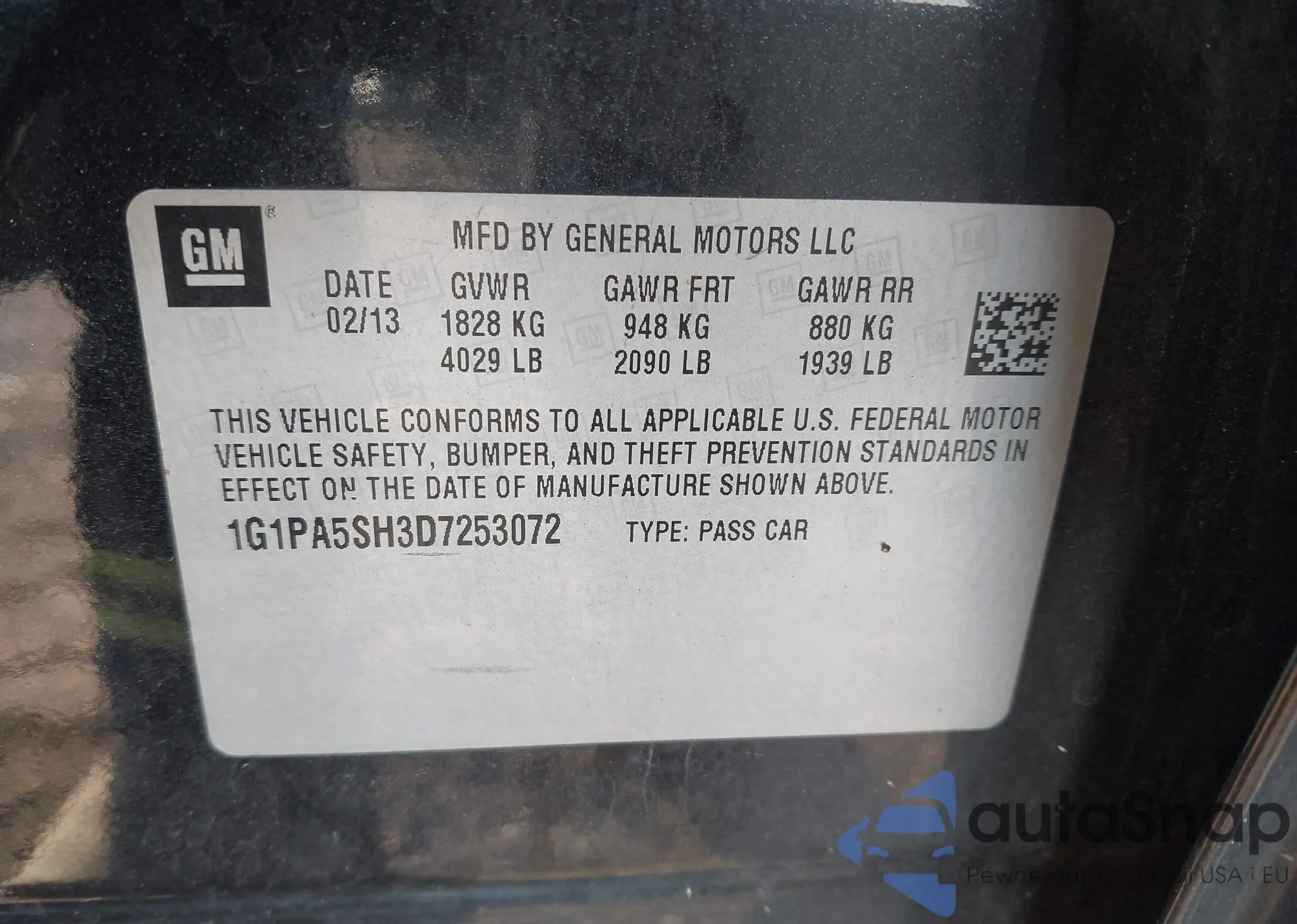 • VIN 1G1PA5SH3D7253072