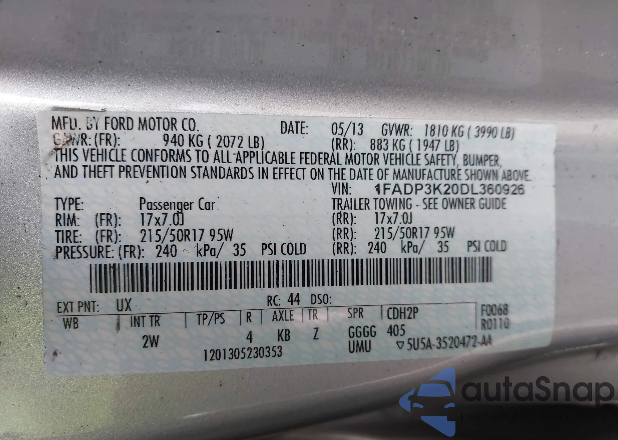 • VIN 1FMCU0HX2DUB50902