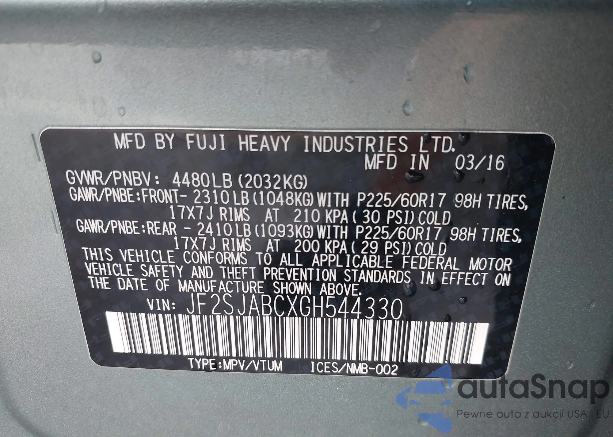 • VIN SHHFK7H89LU210057